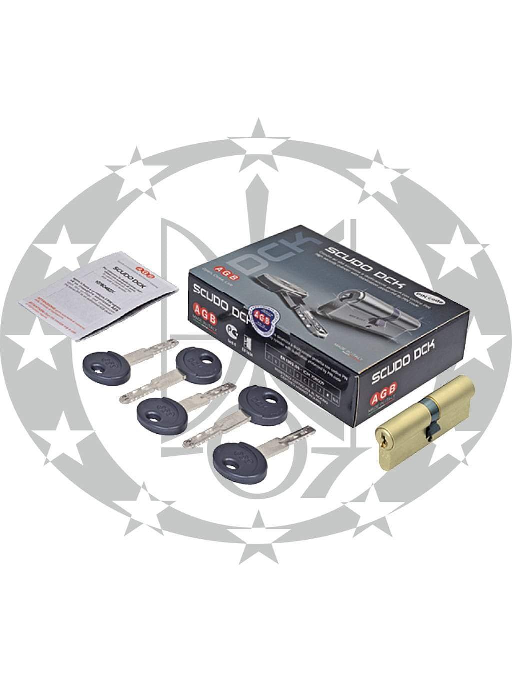 Серцевина AGB Scudo DCK 30/45 латунь (C100102540) – серцевина високого ступеня захисту з плоским реверсивним ключем особливої форми. Дублювання ключа можливе тільки на заводі AGB по унікальному захисному PIN -коду, за запитом власника серцевини.