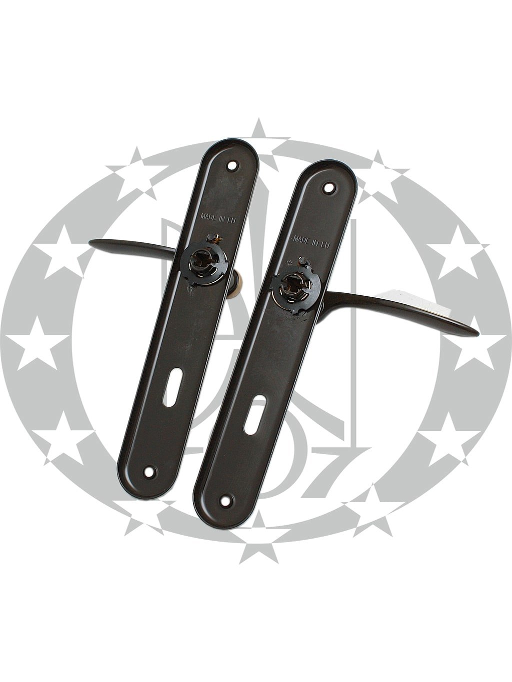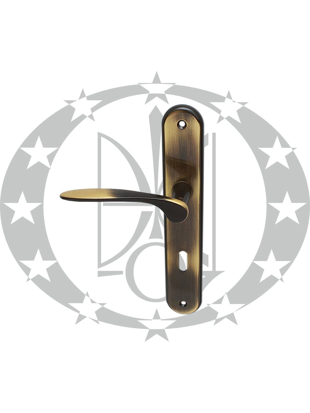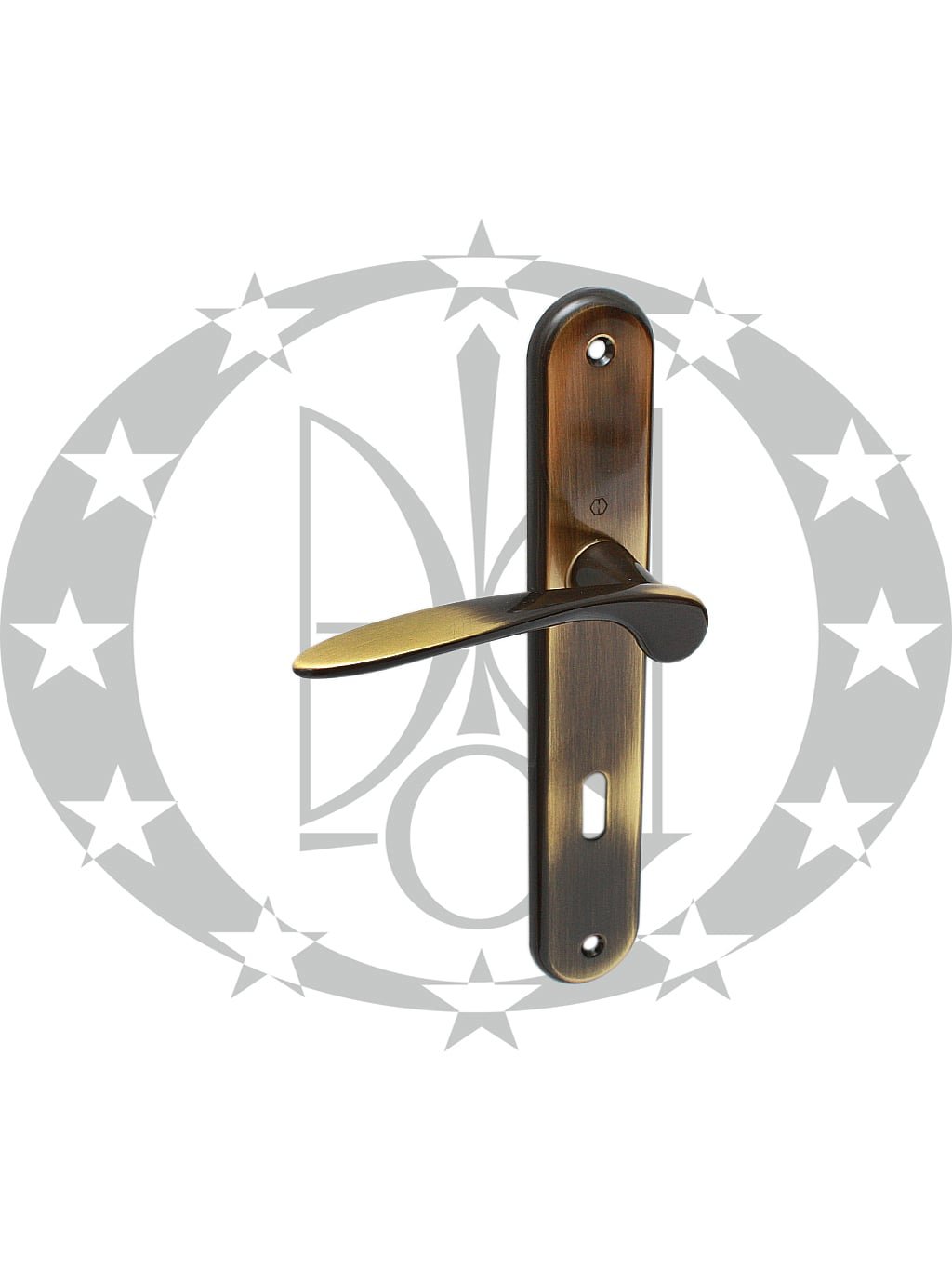 Ручка HOPPE ALICANTE 72 бронза під ключ – латунна нажимна дверна ручка відомого німецького бренду Hoppe на довгій планці з отвором під ключ.