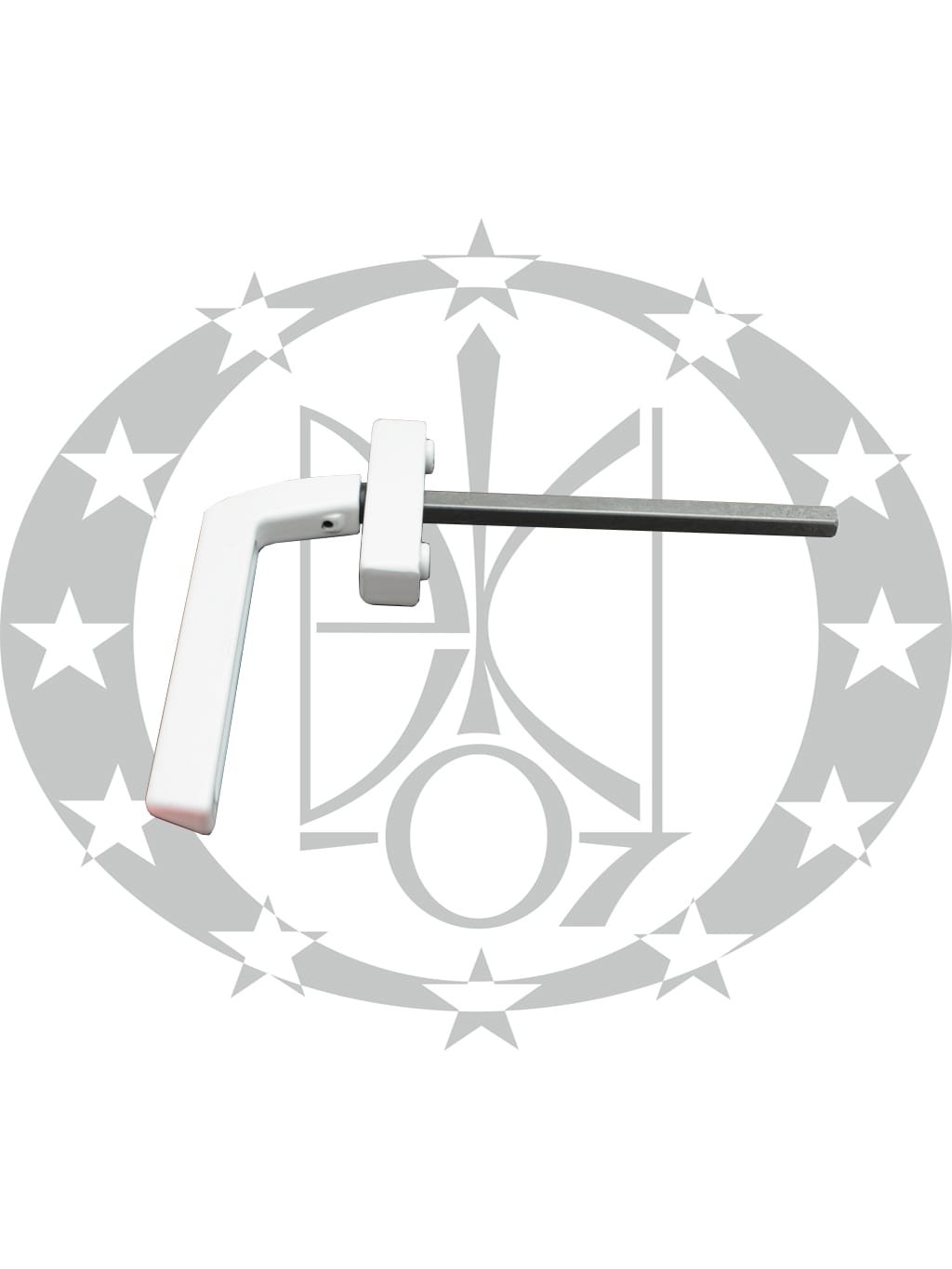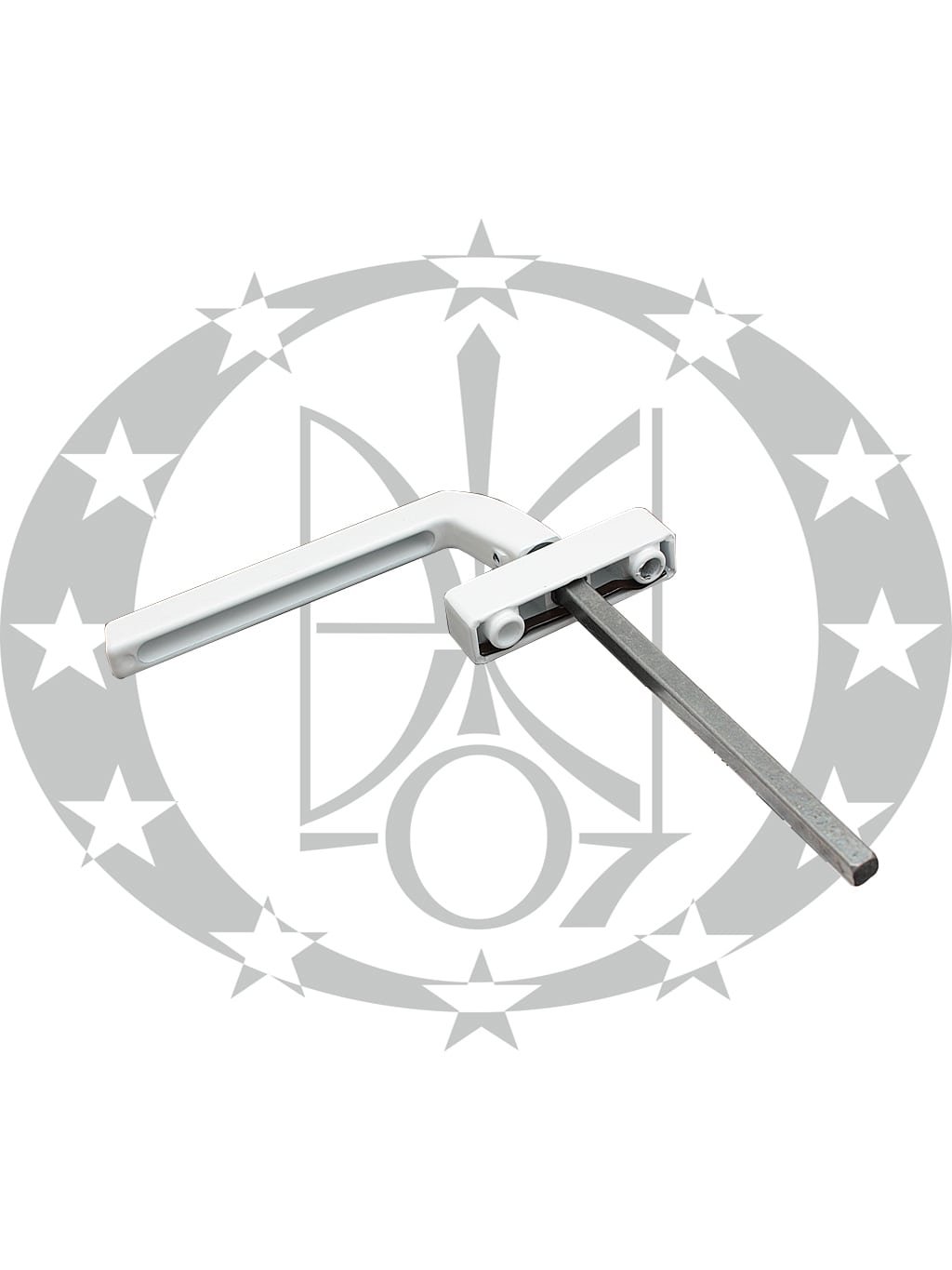 DR L-41H-25994-00-0-7 біла (RAL9016) шток 115мм – віконна ручка відомого німецького виробника Gretsch-Unitas для металопластикових вікон. Прямокутний дизайн ручки підходить для більшості сучасних дизайнів інтер’єру. А вузька планка дозволяє здійснювати монтаж на вузький конструкційний профіль дверей. Ручка виготовлена із алюмінію і вкрита порошковою фарбою. Рекомендована для використання в ПВХ вікон, із монтажною шириною 60-70 мм. Кріпильні гвинти пофарбовані в колір ручки і входять в комплект.