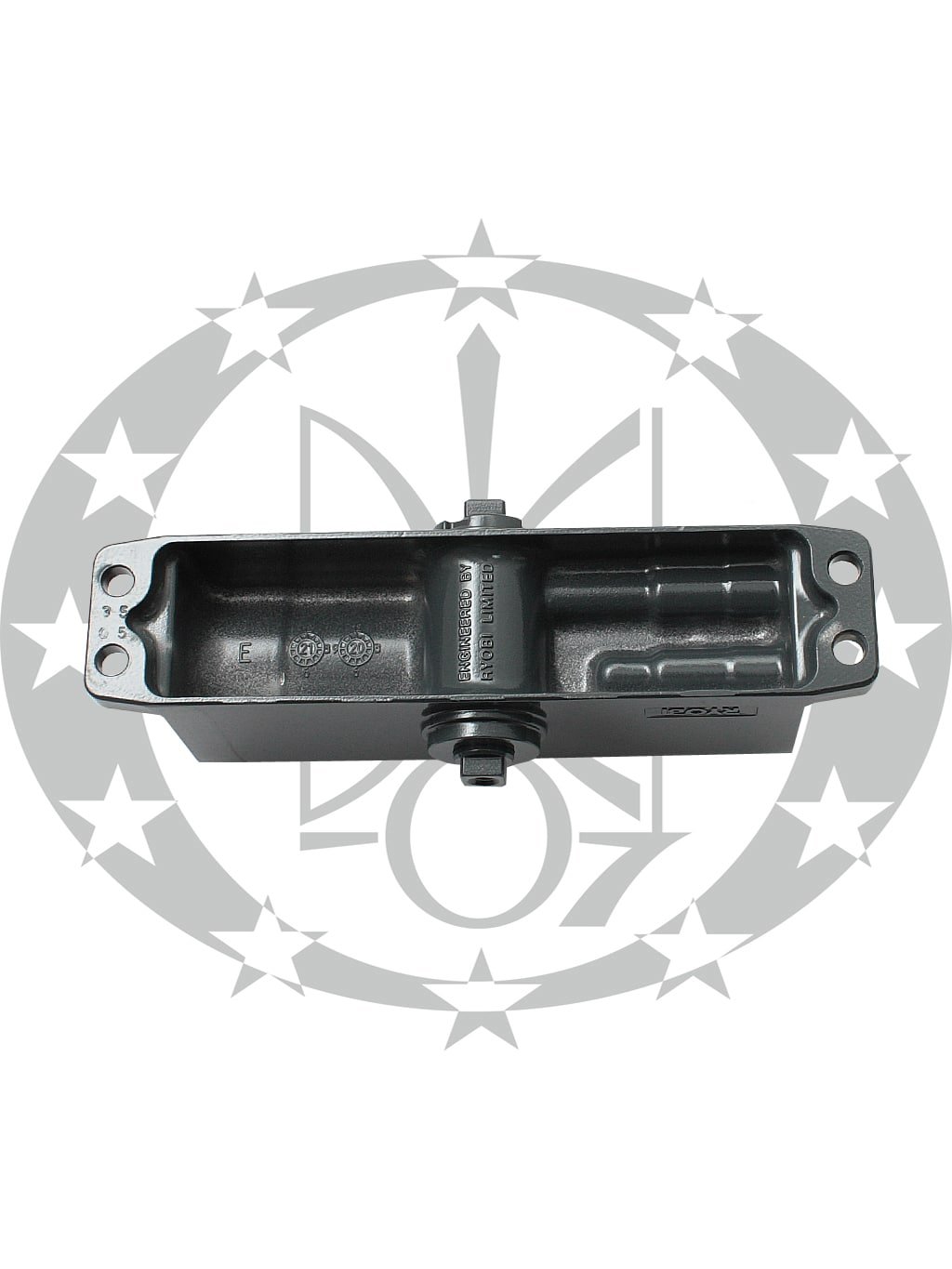 Гідравлічний привід забезпечує чітку роботу дотягувача з кутом відкривання до 180°. Є можливість регулювання основної швидкості в межах 180°-10° і швидкість захлопування – 10°-0°. В дотягувачах RYOBI використовується спеціальне термоконстантне масло, забезпечує стабільну роботу навіть при сильному перепаді температур. Дана модель може бути встановлена на ліво і правосторонні двері з можливістю відкривання як всередину так і назовні. Дверний дотягувач RYOBI 9903 графіт комплектується стандартною тягою без фіксації дверей у відчиненому стані.