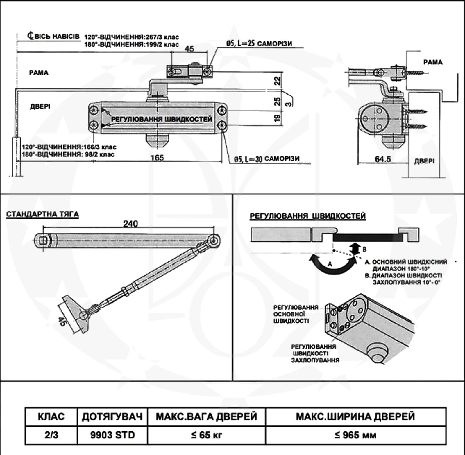 - Дотягувач відповідає 2/3 класу, залежно від місця монтажу.