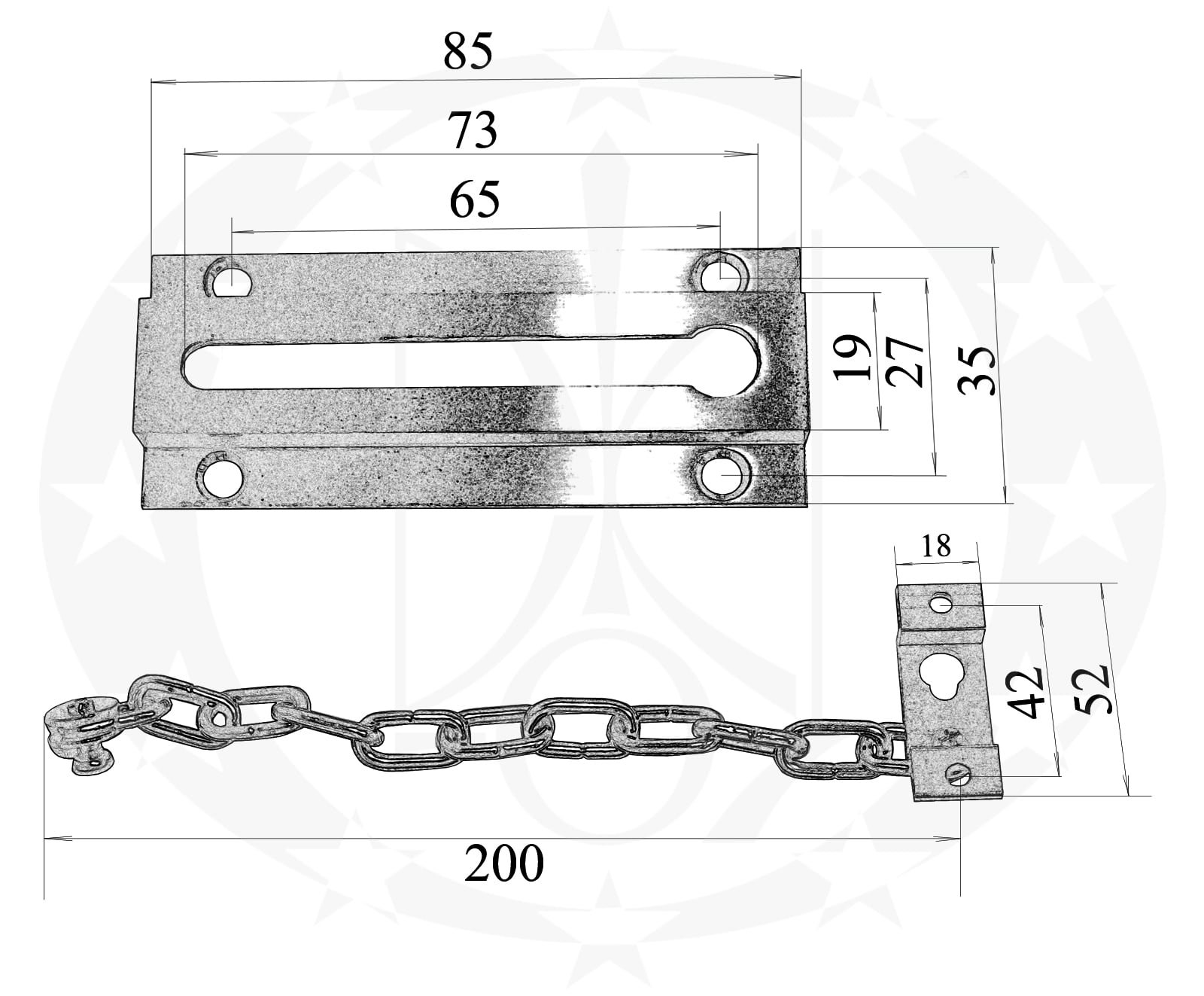 Ланцюжок є обмежувачем відкривання дверей та в доповнення до основного замка підвищує рівень безпеки. Ланцюжок запобігає спробам раптового вторгненню посторонніх осіб в ваше помешкання.