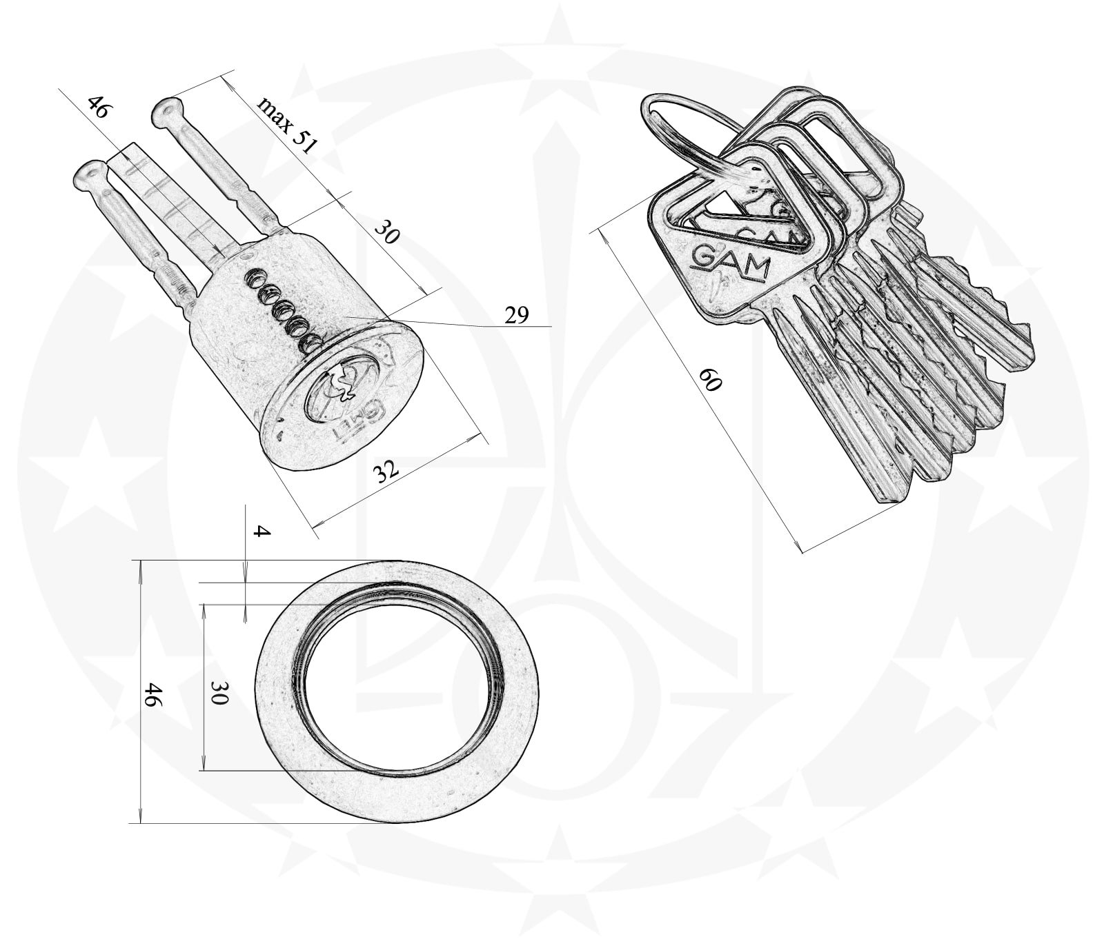 Серцевина до накладного замка GAM латунь – серцевина польського виробника навісних замків та серцевин GAM для накладного замка.