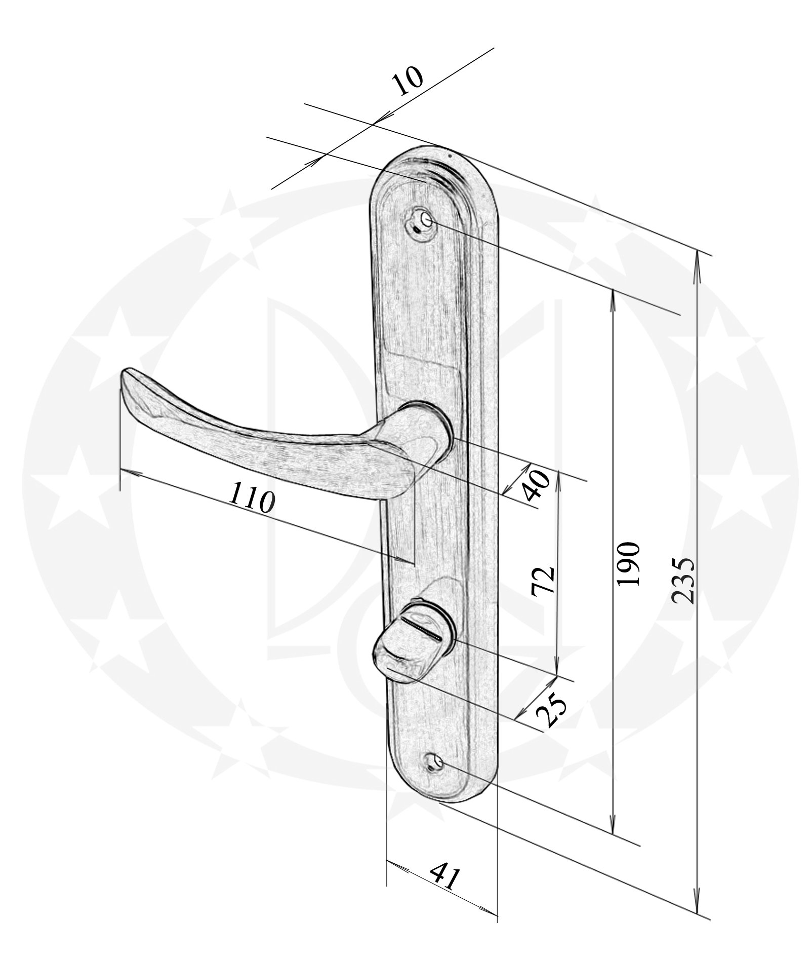 Ручка Metal-Bud BISZKOPT 72 WC бронза – дверна натискна ручка відомого польського виробника Metal-Bud на довгій планці із воротком.