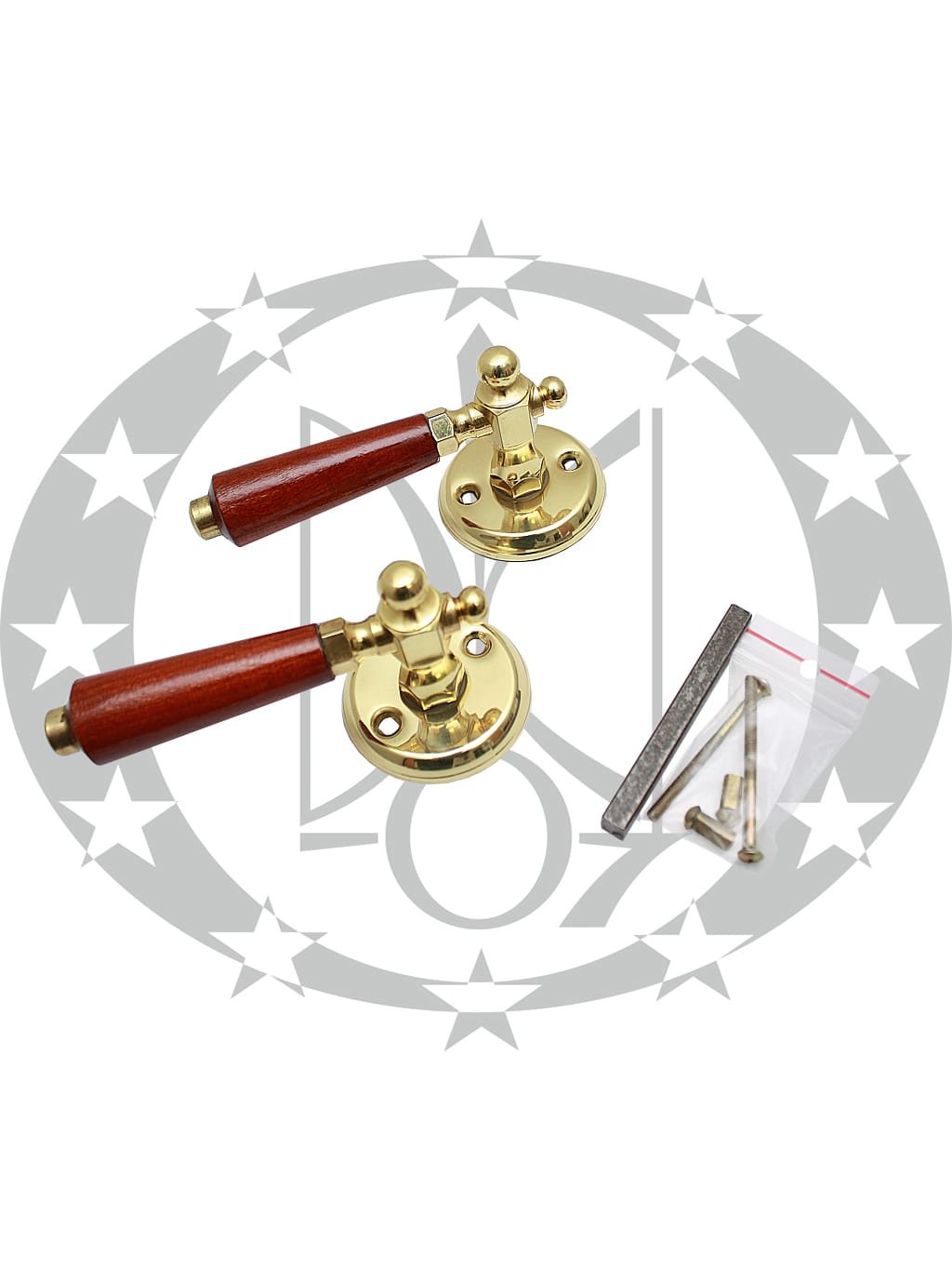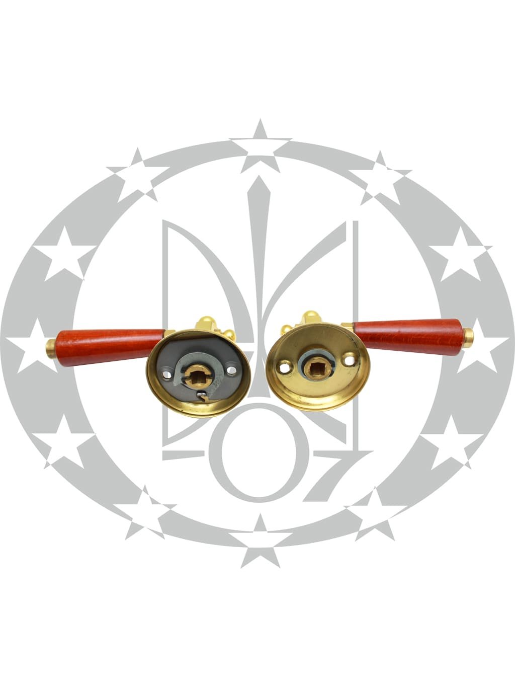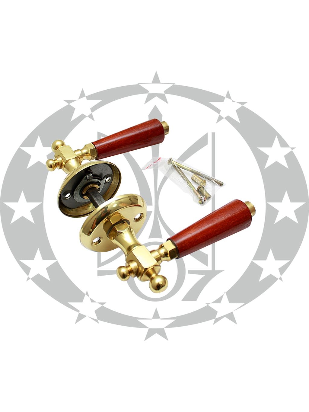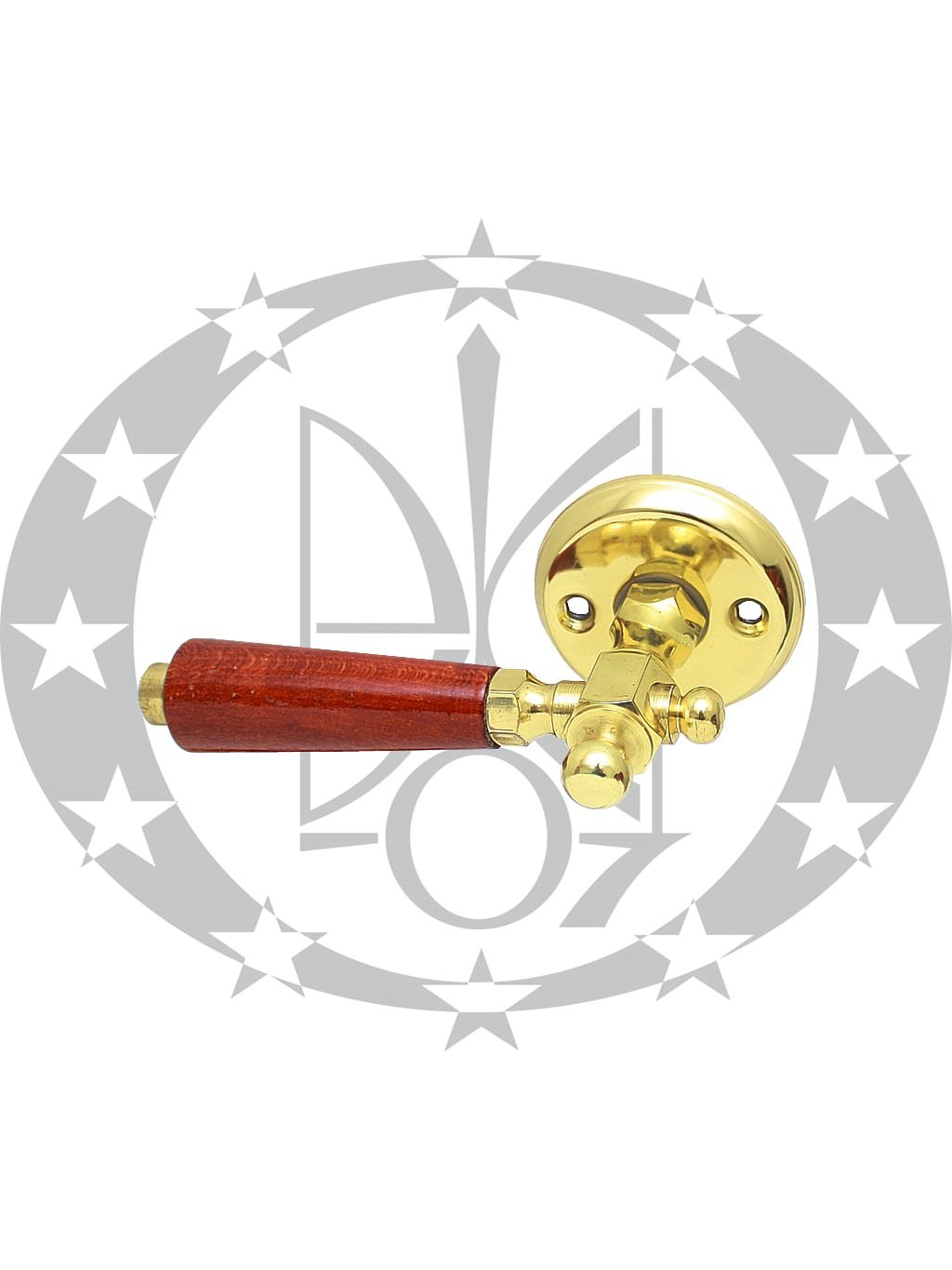 Ручка на розеті Дерево темна – натискна ручка польського виробництва на круглій розеті. Ручка виготовлена з комбінації латуні та дерева.