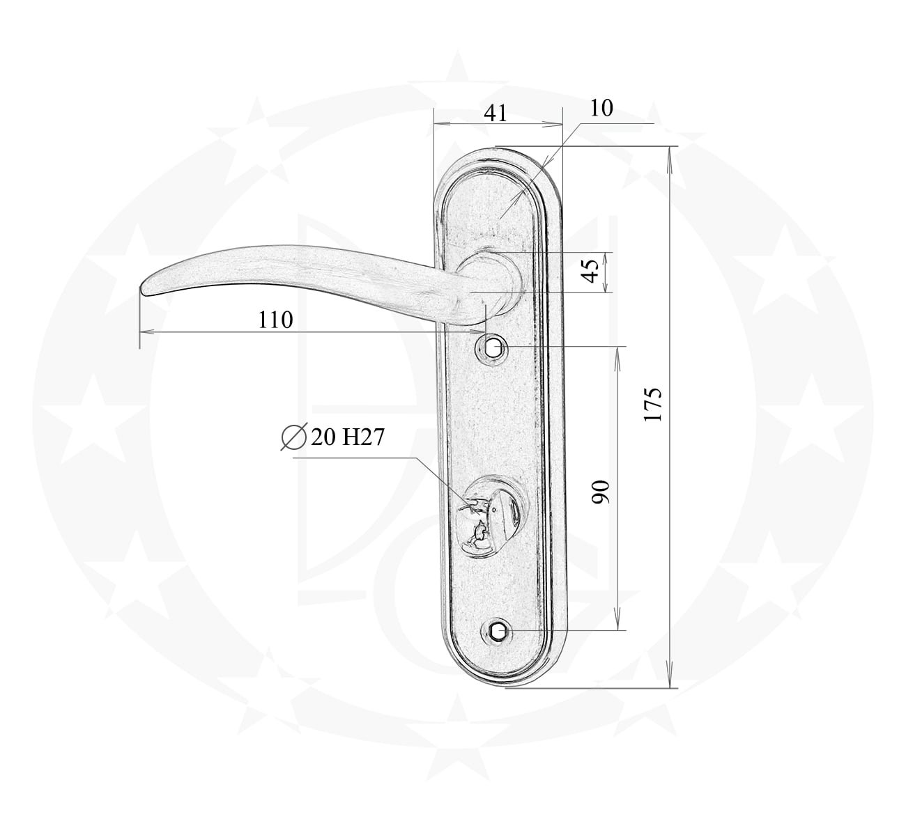 Ручка під ключ Metal-Bud FING-BIS 72 – дверна натискна ручка відомого польського виробника Metal-Bud на довгій планці з отвором для ключа.