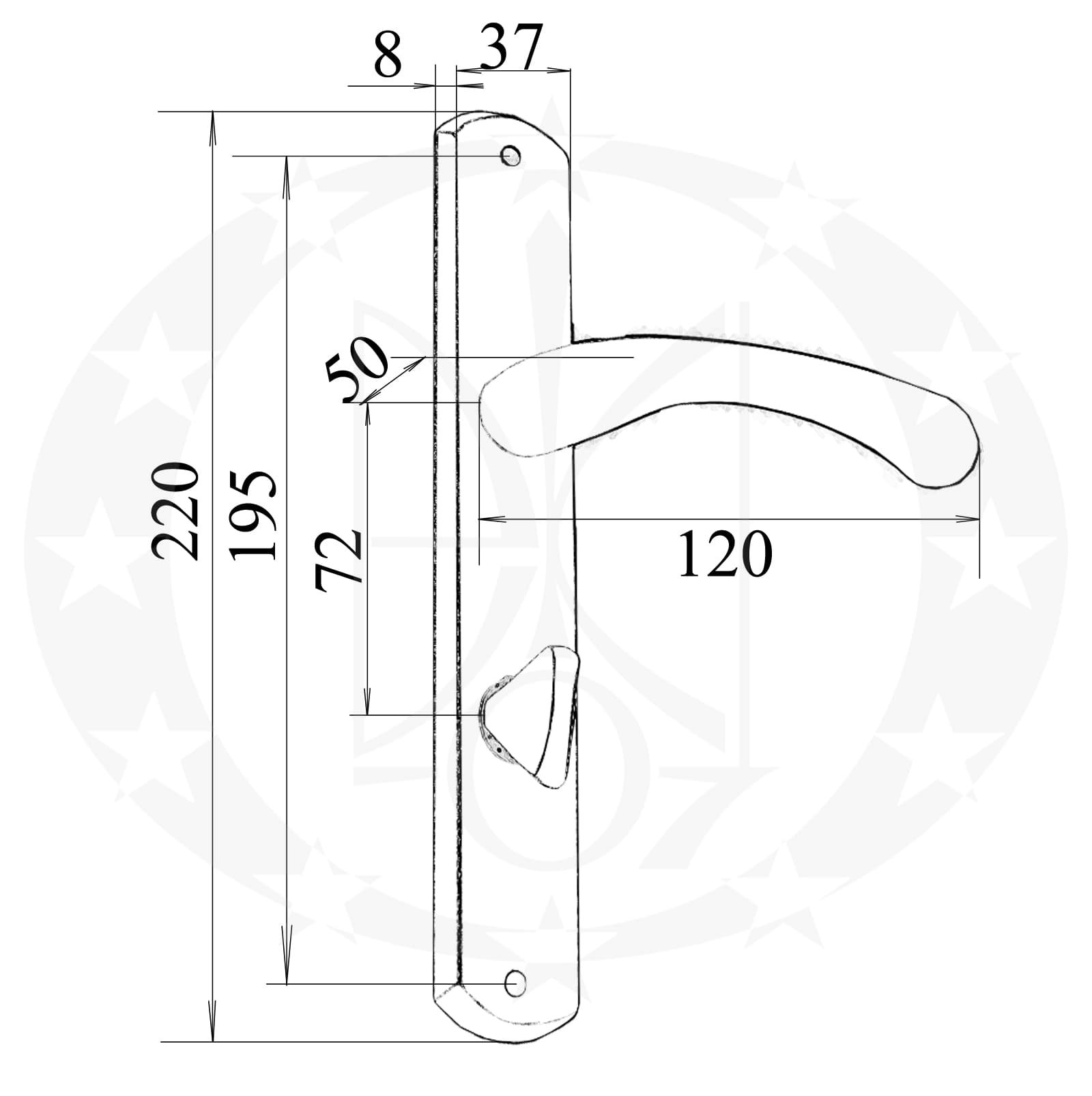 Матеріал натискної частини ручки – сплав. Планка виготовлена із штампованого металу. Ручка вкрита порошковим покриттям.