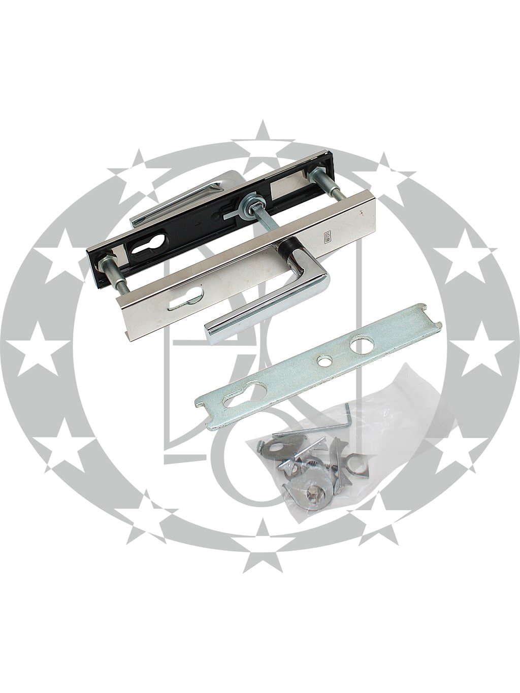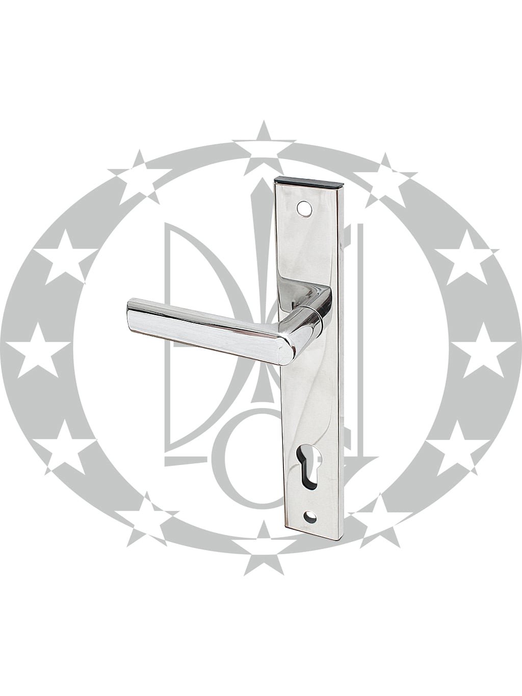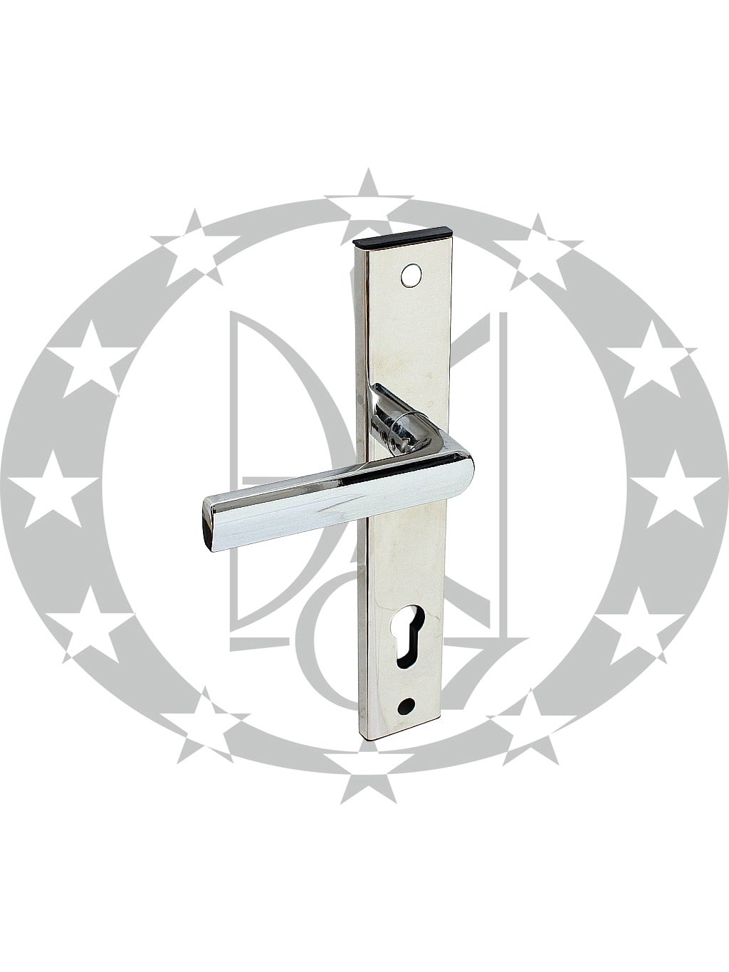Ручка LOB MKS01 90 PZ хром противзломна – дверна нажимна ручка польського виробника LOB на довгій планці з отвором під серцевину.