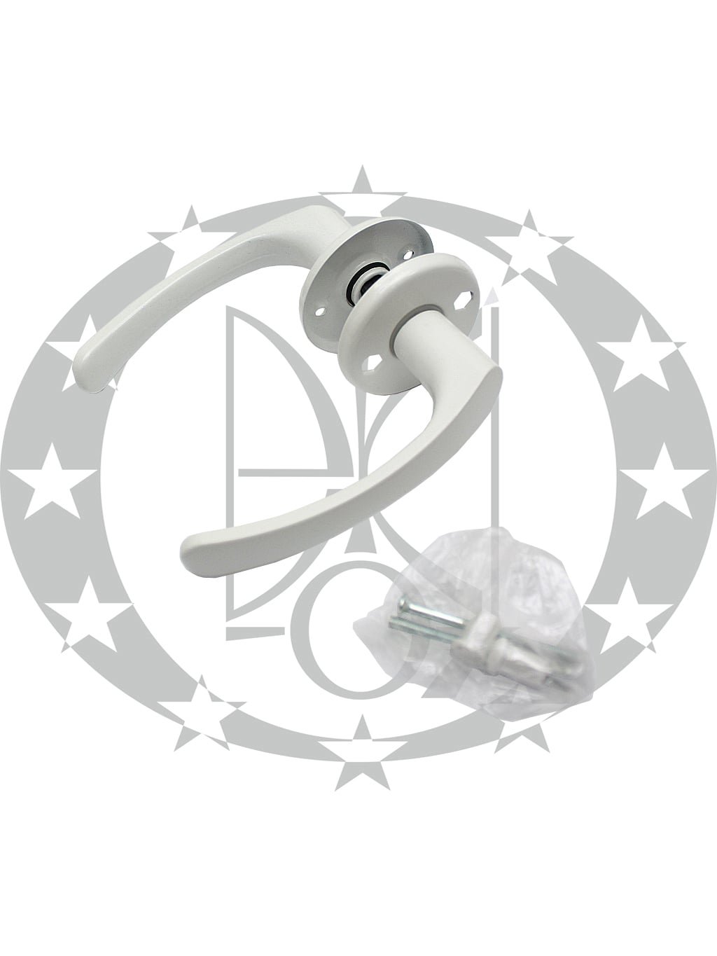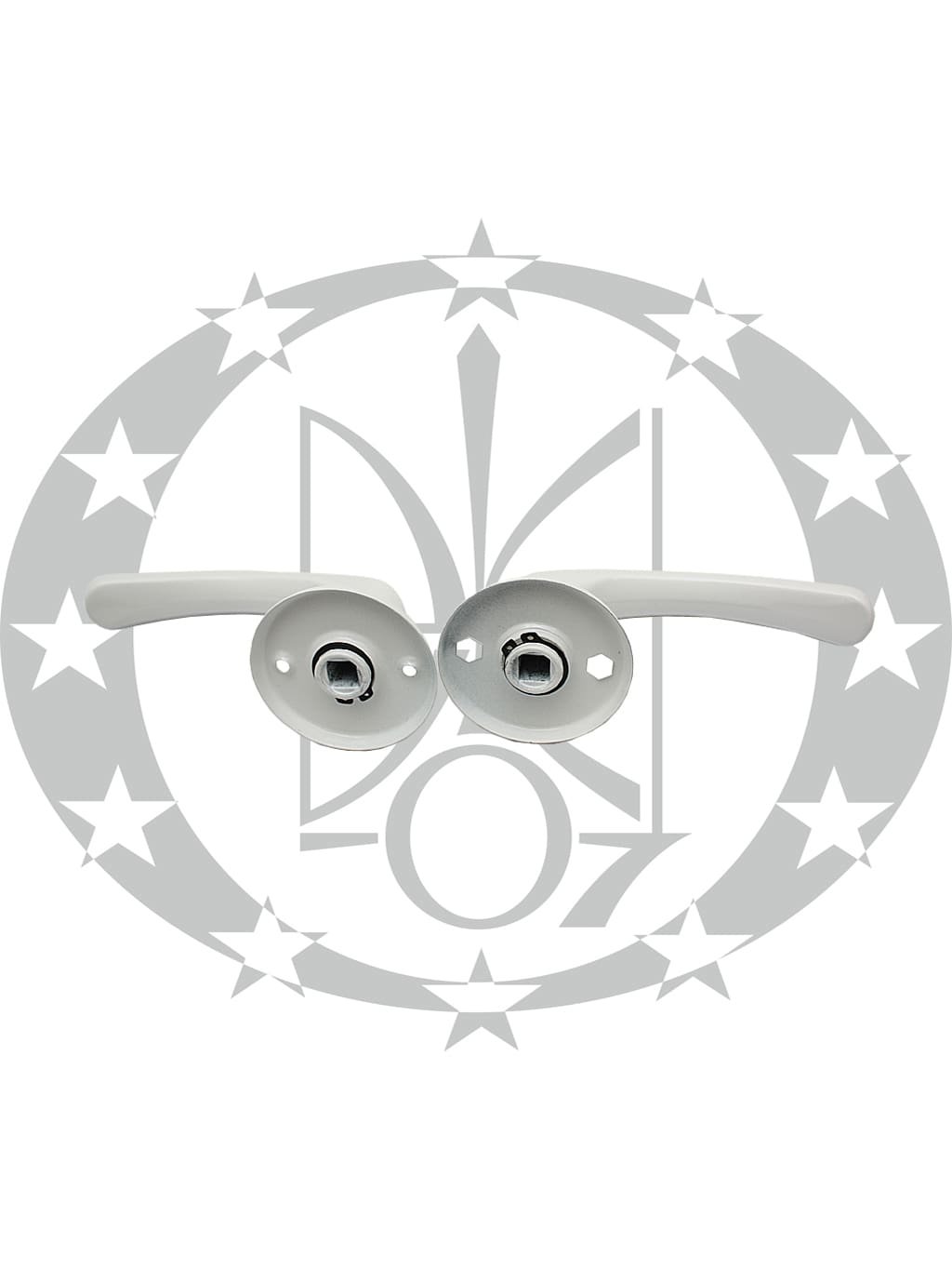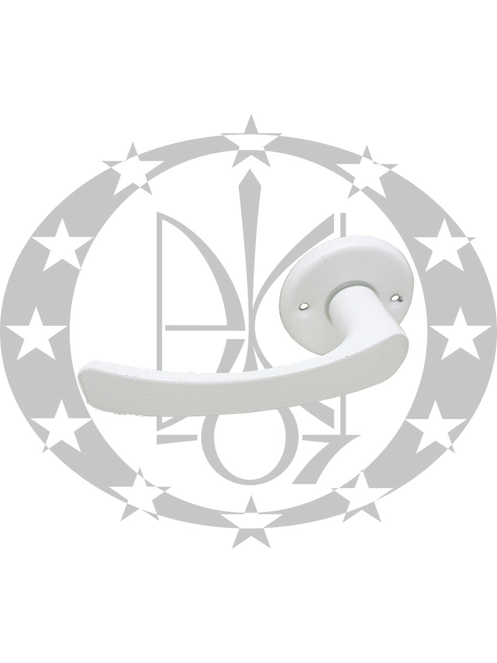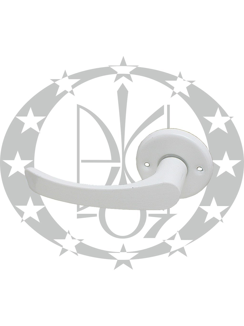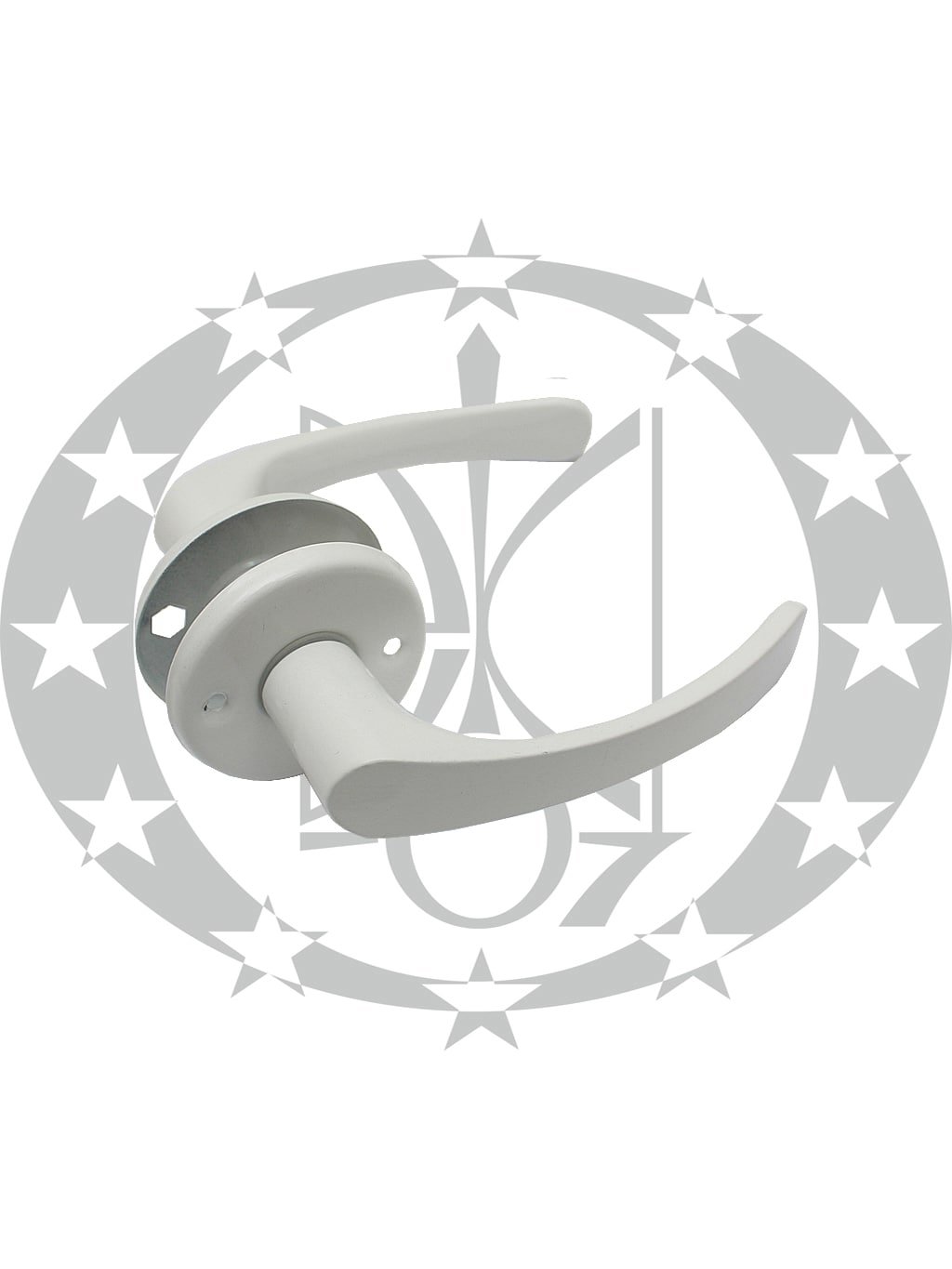 Ручка Лижа нова біла розета – дверна, натискна ручка польського виробництва на круглій розетті.