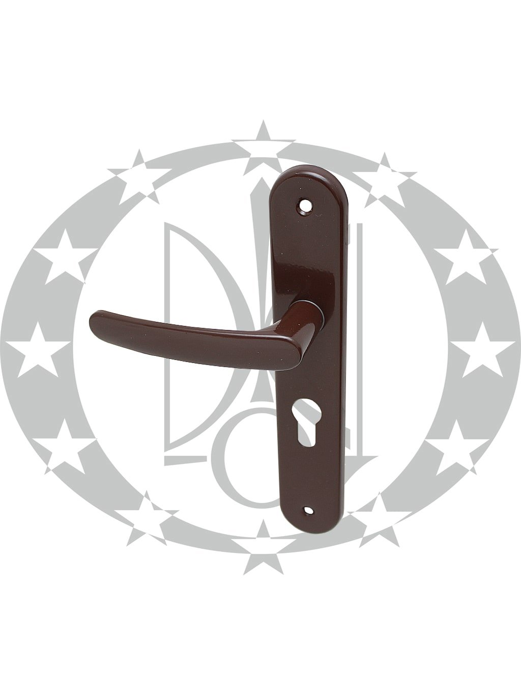 Дверна ручка Лижа нова коричнева 60 PZ – дверна натискна ручка польського виробництва на довгій планці під серцевину.