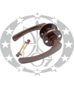 Ручка Лижа нова коричнева розета – дверна, натискна ручка польського виробництва на круглій розеті.