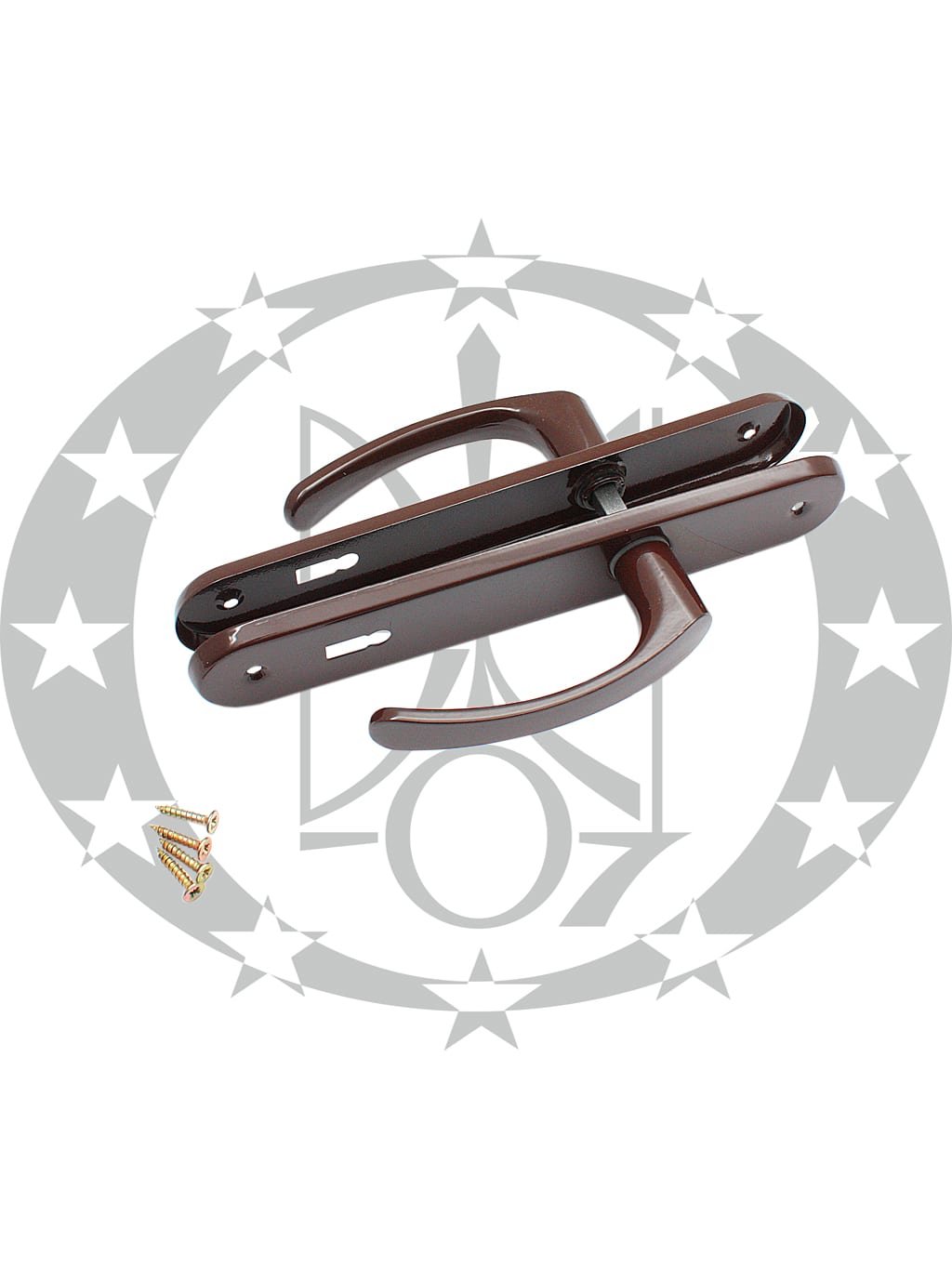 Ручка під ключ Нова коричнева 72 – дверна натискна ручка польського виробництва на довгій планці з отвором під ключ.