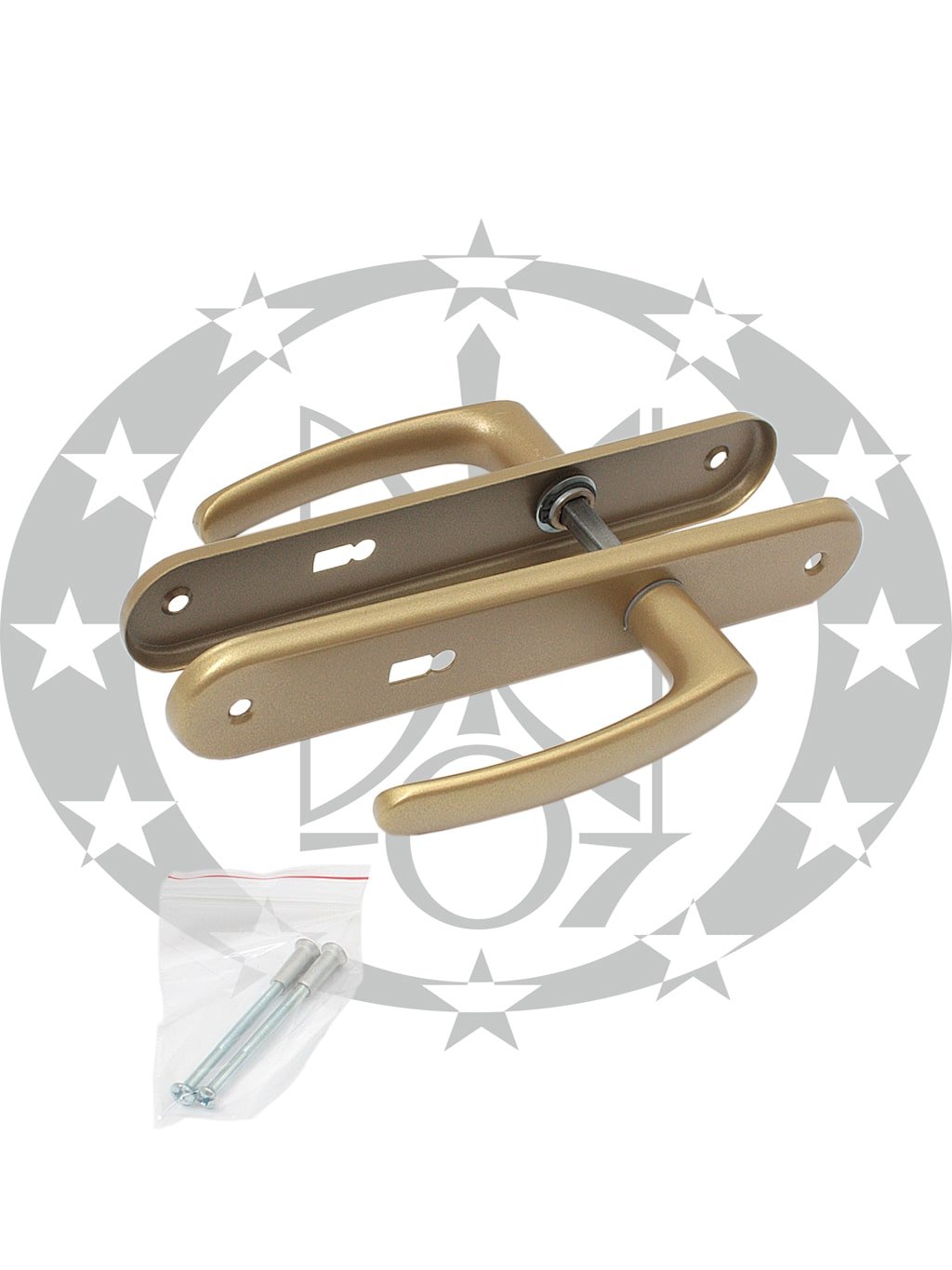 Ручка під ключ Нова жовта 90 – дверна натискна ручка польського виробництва на довгій планці під серцевину.