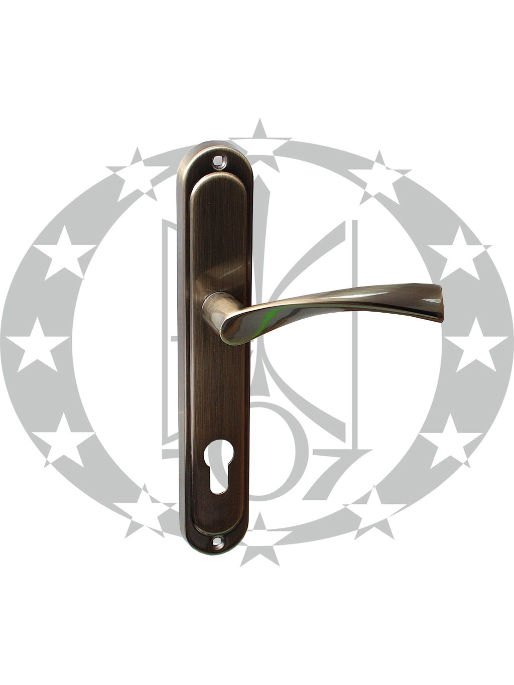 Ручка на планці ROMA 72 PZ бронза – дверна, натискна ручка польського виробництва на довгій планці з отвором під серцевину. Ручка виготовлена із сплаву методом лиття та покрита патиною і шаром лаку.
