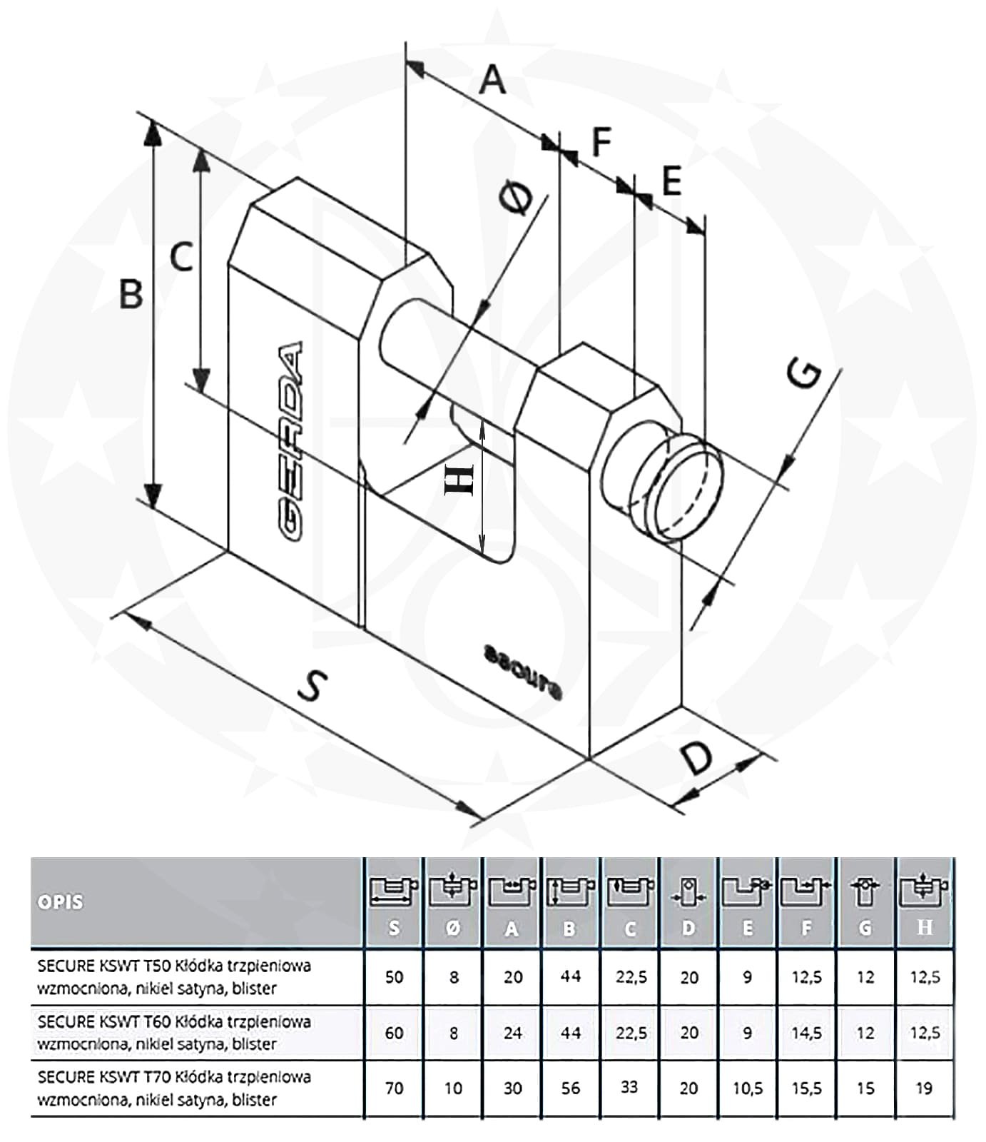 Навісний замок GERDA KSWT-70 пешка – посилений П-подібний навісний замок відомого польського виробника Gerda. Замок виконаний в міцному корпусі з твердої латуні та стержнем з гартованої сталі.