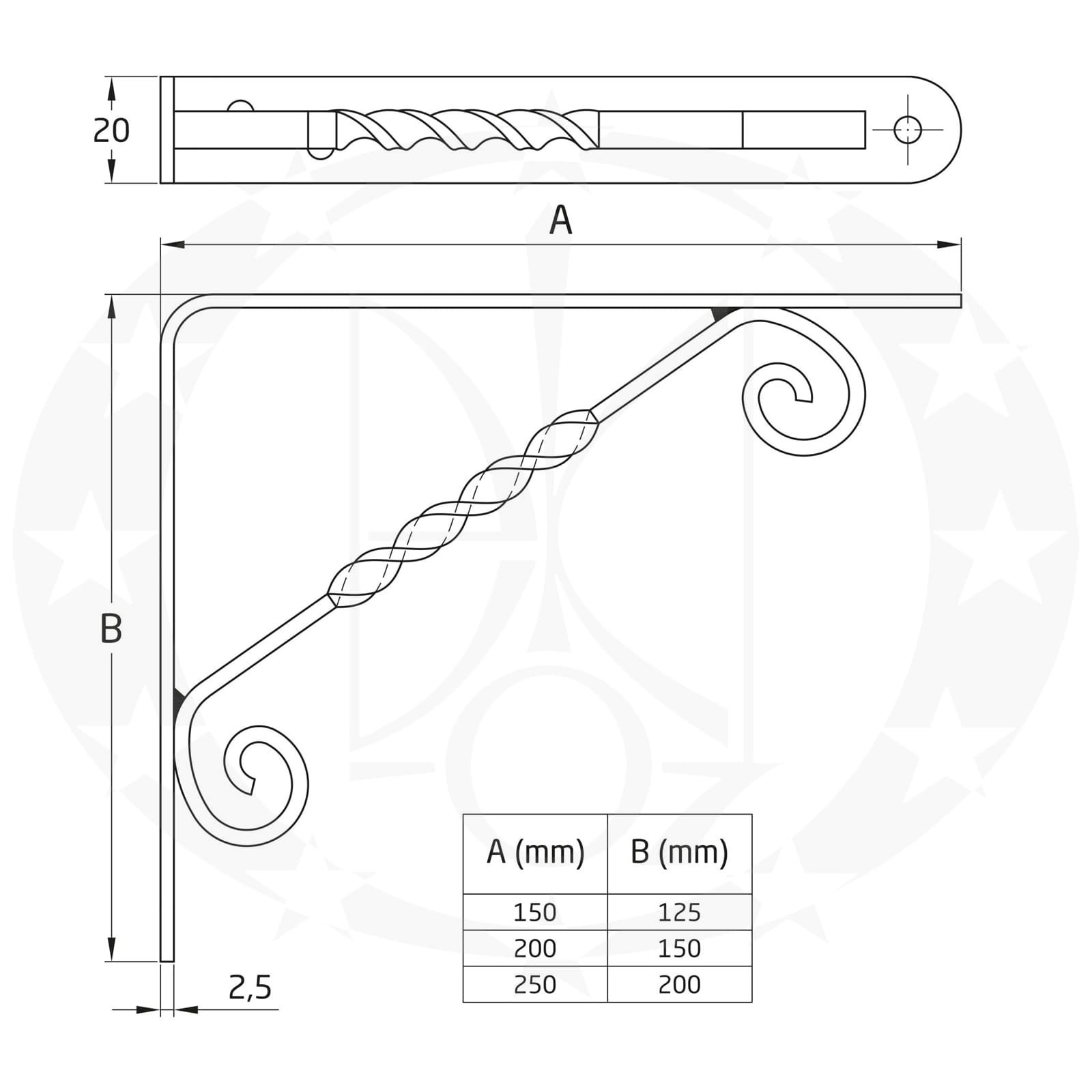 Кронштейн AMIG mod.11 (8838) чорний 200 х 150 – декоративний металевий кутник відомого іспанського виробника AMIG. Кутник AMIG mod.11 призначений для кріплення полиць до вертикальних поверхонь. Кутник виготовлений із чорного металу та вкритий порошковою фарбою на епоксидній основі. Максимальне навантаження на кутник 60 кг.