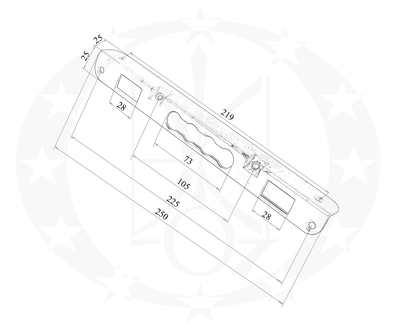 Планка виготовлена із листового металу методом штампування та вкрита гальванічним покриттям. В конструкції передбачені отвори для фіксації планки шурупами.