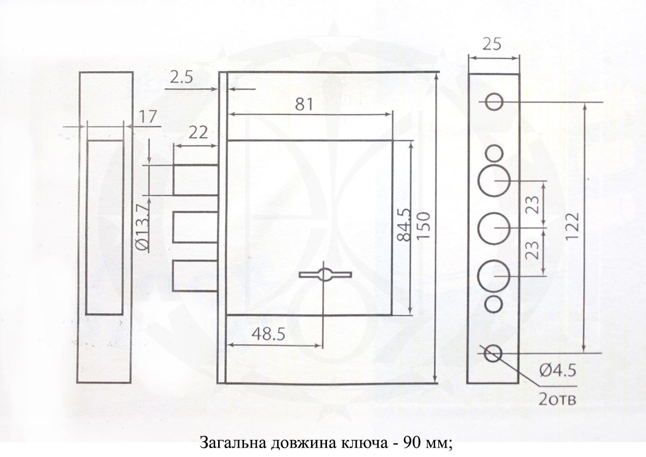 - Кількість обертів ключа необхідних для закривання – 2;