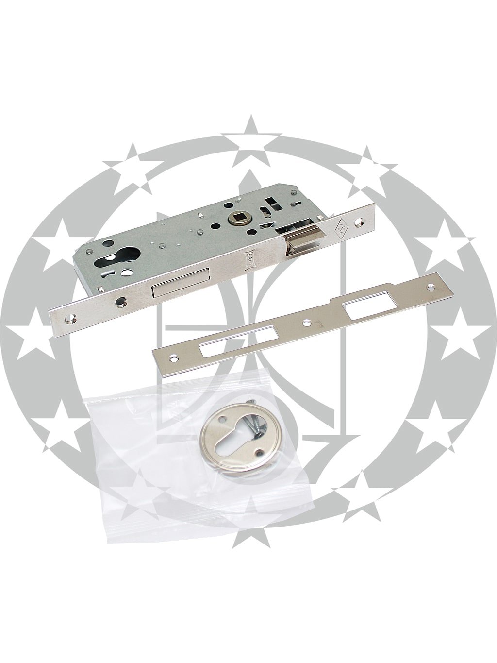 Він оснащений одним прямокутним стальним ригелем (виліт 20 мм). Защіпка керується за допомогою поворотно-тягової ручки (в комплект не входить), висування ригеля здійснюється за допомогою стандартної серцевини (в комплект не входить). В корпусі замка присутні отвори для кріплення броненакладок та стяжних ручок на розеті.