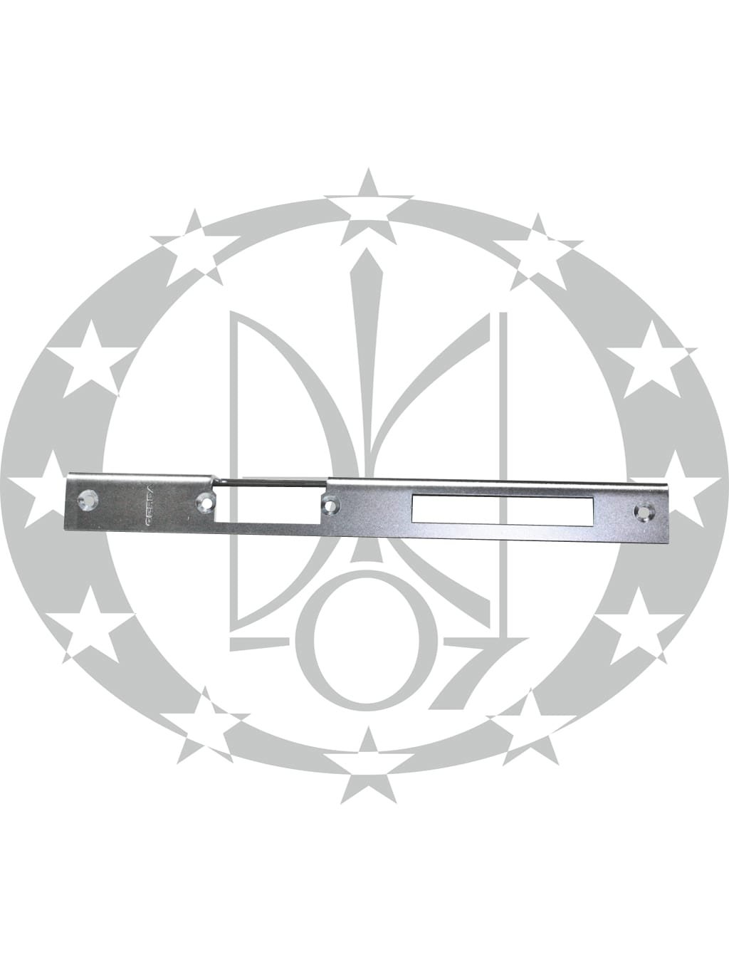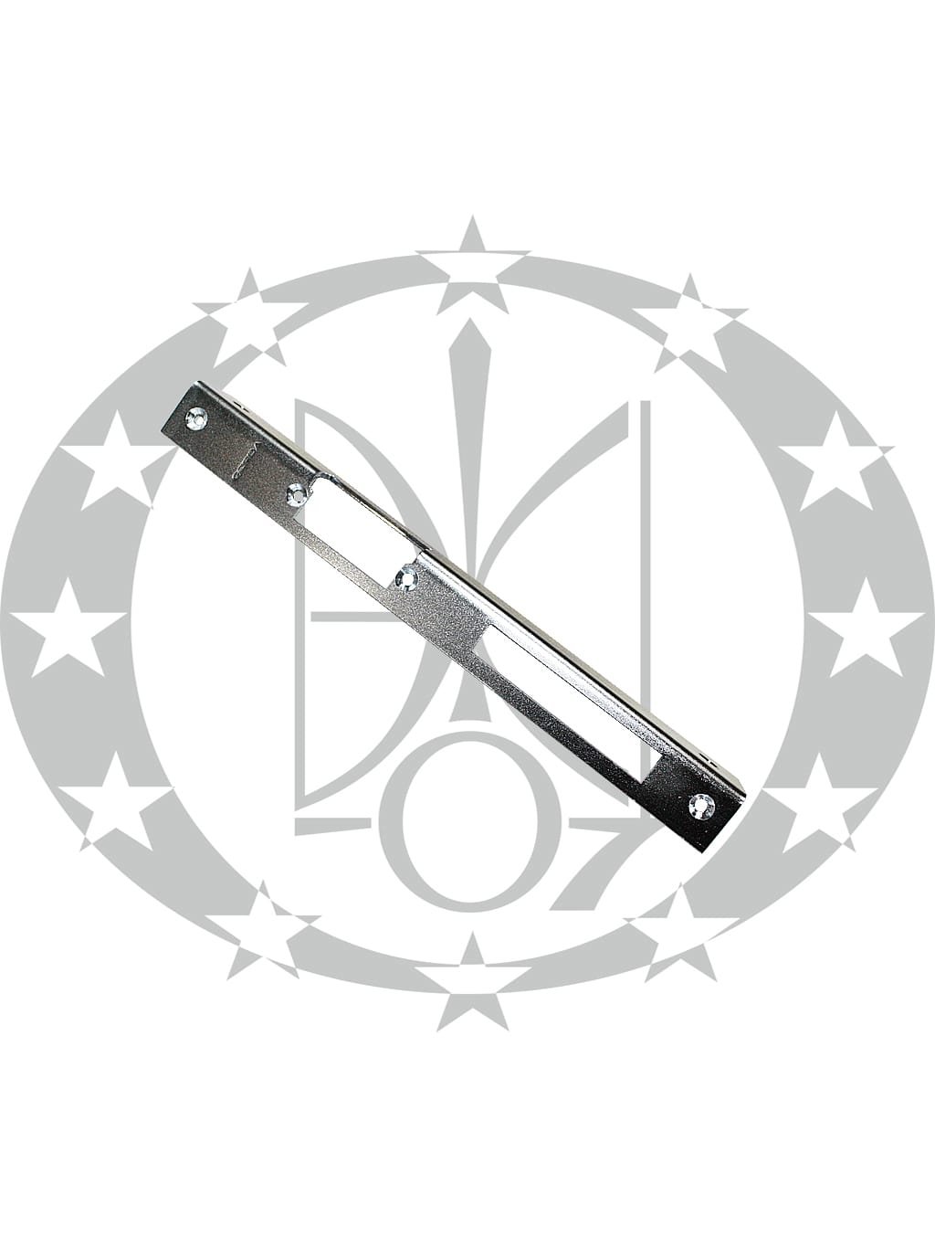 Планка до електрозачепа GERDA кутова – кутова зворотня планка для електрозачепів польського виробника фірми GERDA. Планка виготовлена із листової сталі й вкрита нікелевим гальванічним покриттям. В конструкції планки передбачені монтажні отвори для кріплення шурупами.
