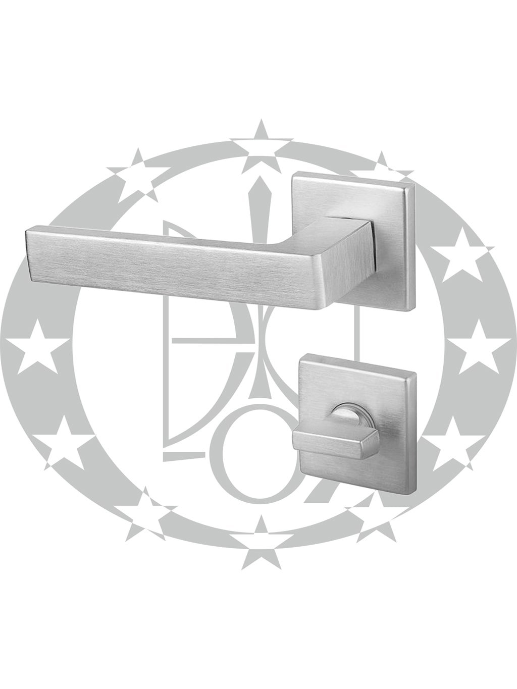 Ручка DND QUATTRO 02-Z WC хром сатинований (264/14-ZT/ZCS) – дверна ручка італійського бренду DND by Martinelli на квадратній розеті із додатковою накладкою з воротком.