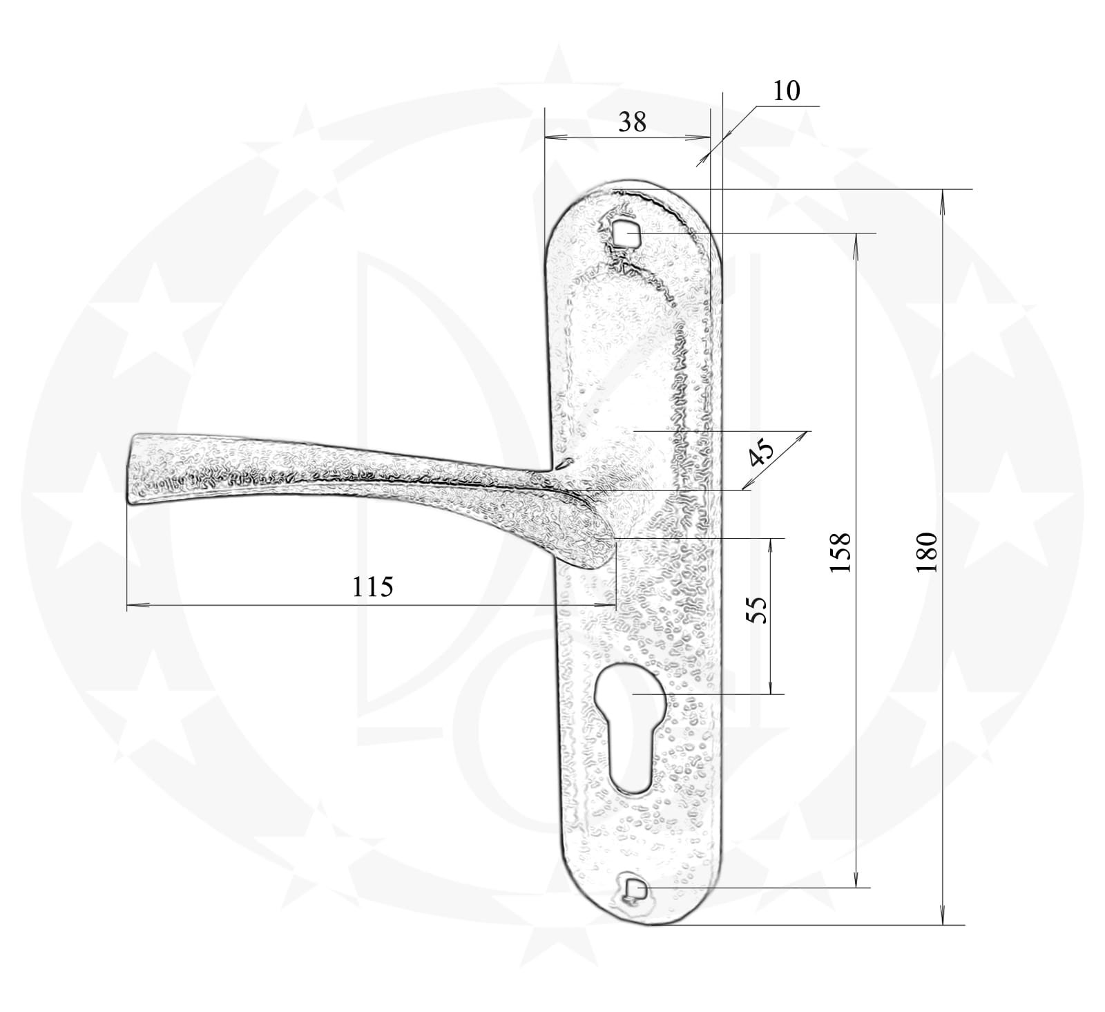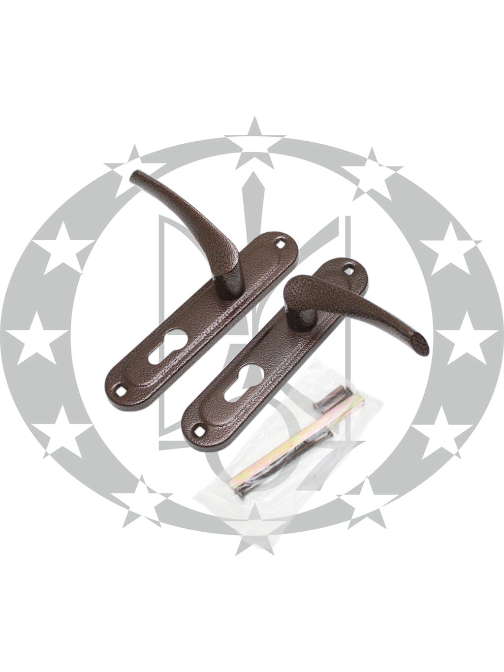 Планка ручки виготовлена із сталі а натискна частина із славу ЦАМ. Ручка вкрита порошковою фарбою, яка зберігає естетичність ручки на роки користування. Кріплення ручки до дверного полотна здійснюється за допомогою шурупів.