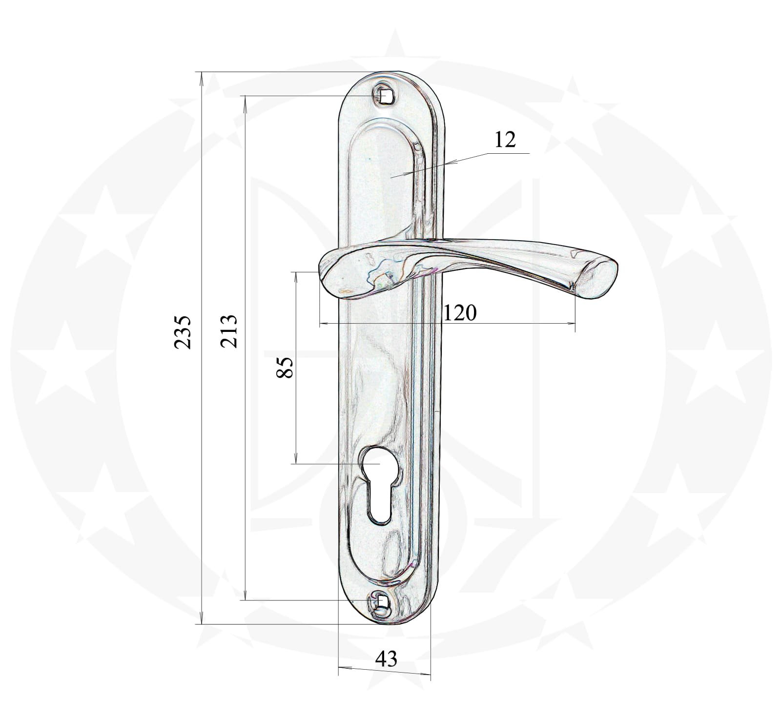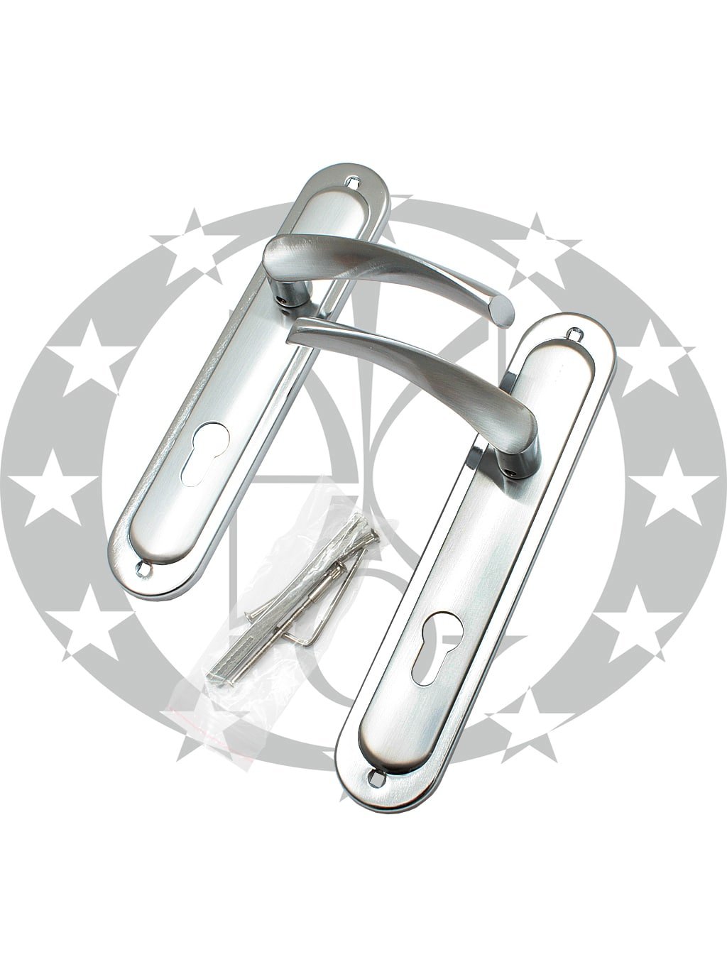 Ручка BRUNO BRAVO 85 PZ хром/нікель сатинований – дверна ручка китайського виробника BRUNO на довгій планці з отвором під серцевину. Ручка призначена для встановлення у вхідні та міжкімнатні двері виготовлені із металу чи дерева. В конструкції ручки використовуються гужон для фіксації клямки (поворотно – тягової частини) і запобігають її провисанню.