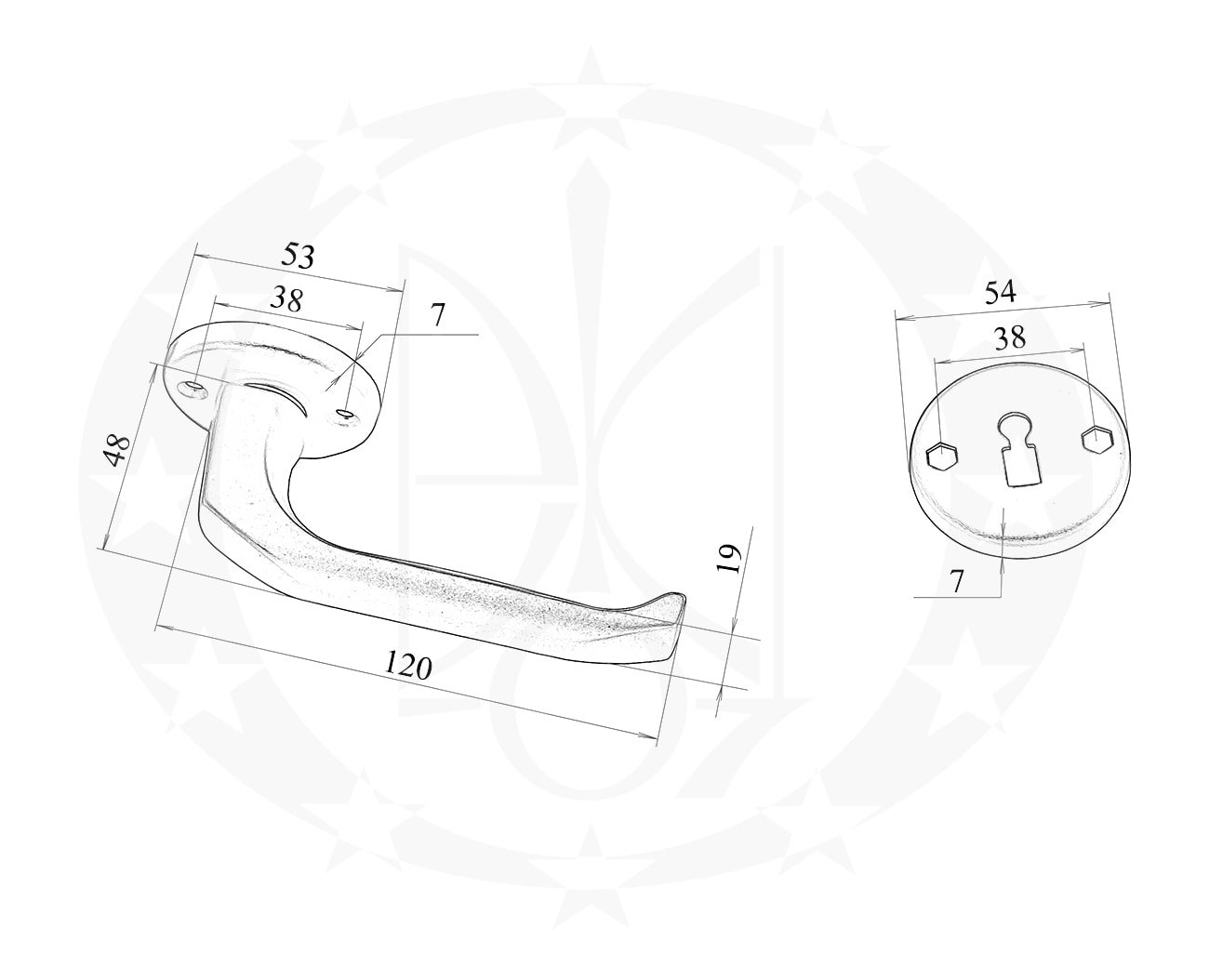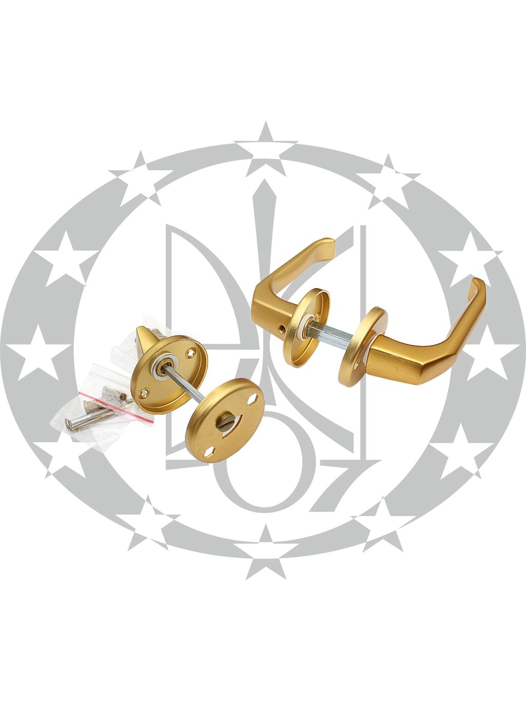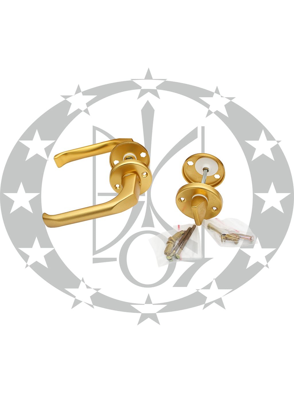Ручка LOB MKT83 WC розета анодована жовта комплектується дверними накладками із воротком та стяжними болтами для ручок та накладок.