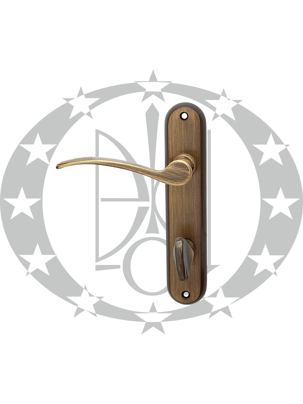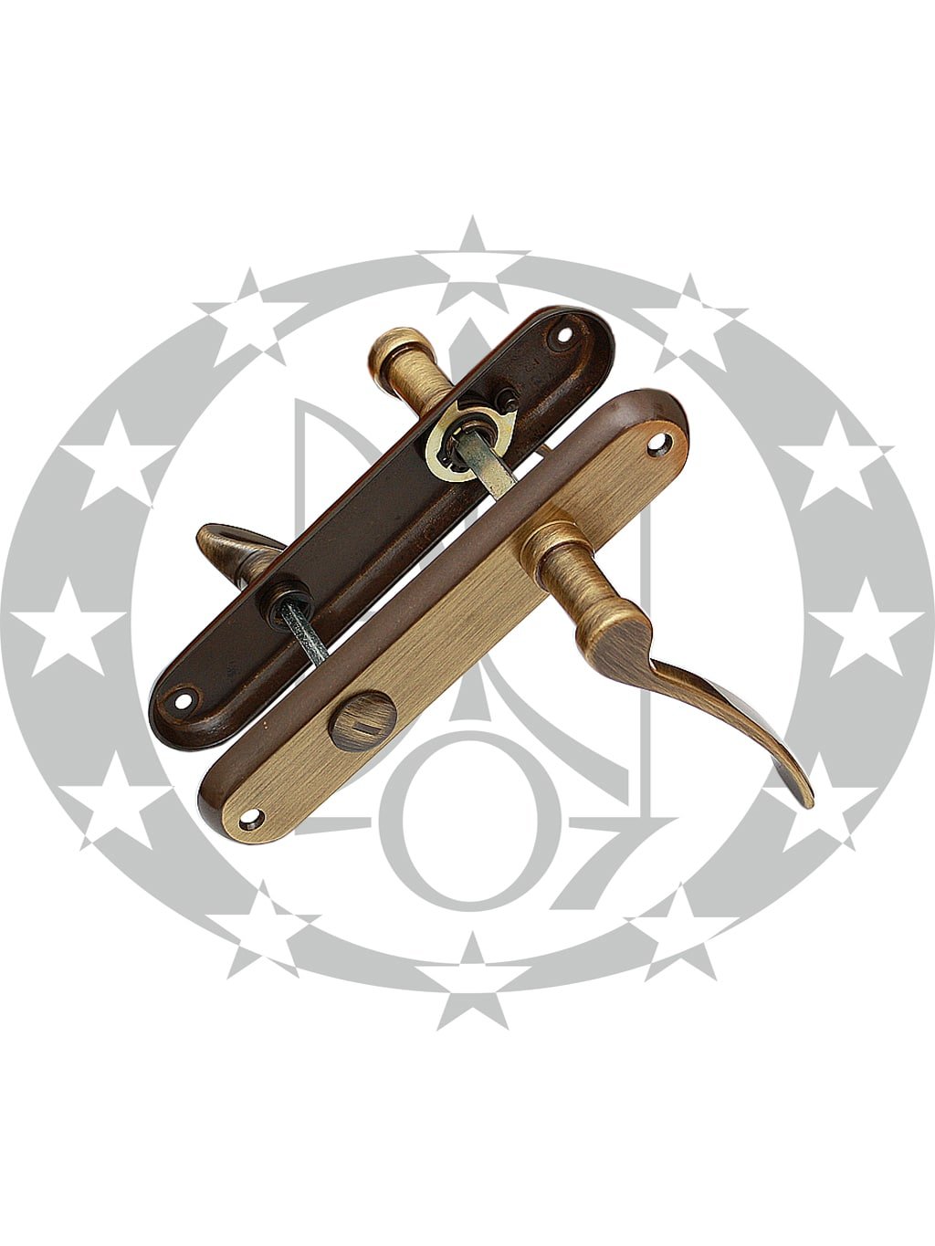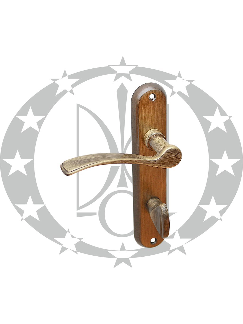 Ручка MADRID scurta 72 WC бронза – дверна ручка італійсько – румунського виробника Verofer на вкороченій планці з воротком. Дана ручка призначена для встановлення у внутрішні двері без замикання.