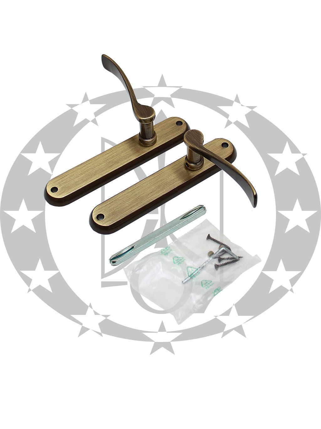 Кріплення ручок до дверного полотна здійснюється за допомогою стяжних болтів чи шурупів які йдуть в комплекті.
