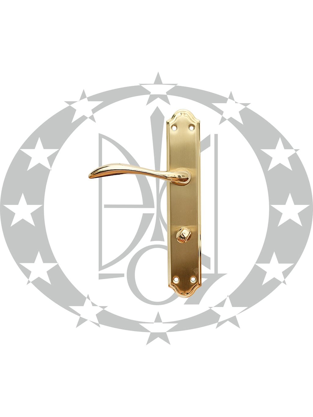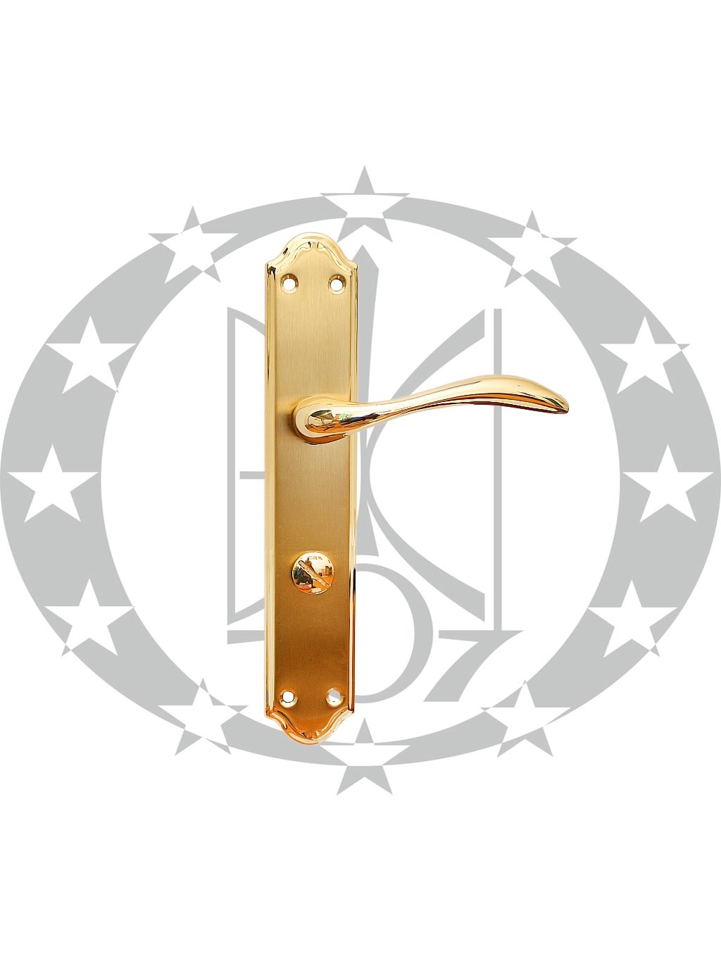 Ручка MEDEA 72 WC латунь – дверна ручка італійсько – румунського виробника Verofer на довгій планці з воротком. Дана ручка призначена для встановлення у внутрішні двері із сантехнічним механізмом.