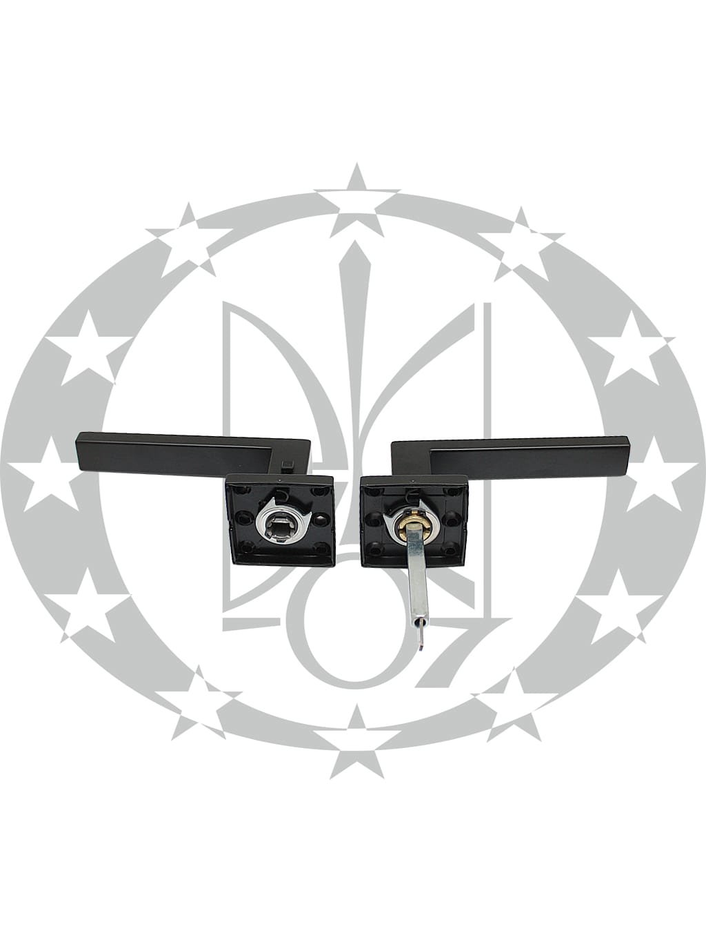 Ручка METAL-BUD TOPAZ CLICK (STKCZSLP) чорна PVD права – повортоно-тягова дверна ручка на квадратній розеті відомої польської торгової марки METAL-BUD. Дана модель оснащена фіксатором клямки – здійснюється блокування відкривання дверей без використання серцевини, ключа, чи механізму під вороток. Блокування здійснюється переміщенням клавіші на клямці й спеціальний механізм заблокує можливість відкривання клямки, а кольорова індикація на клавіші відображає стан фіксації – заблокована ручка чи ні. На протилежній частині ручки знаходиться гвинт екстренного розблокування дверей із зовні.