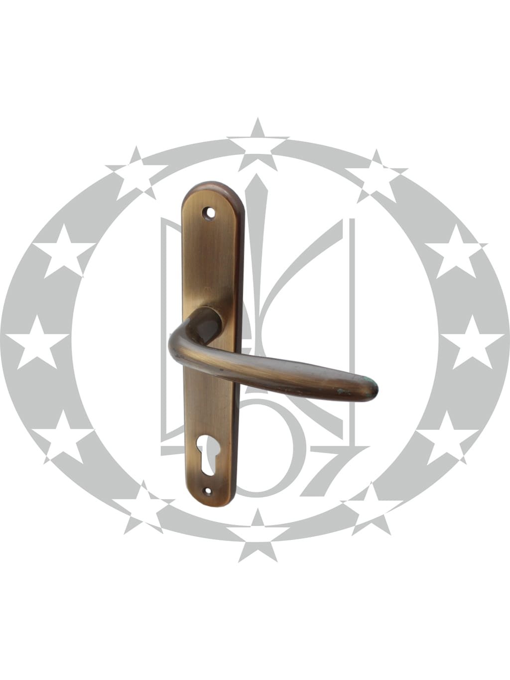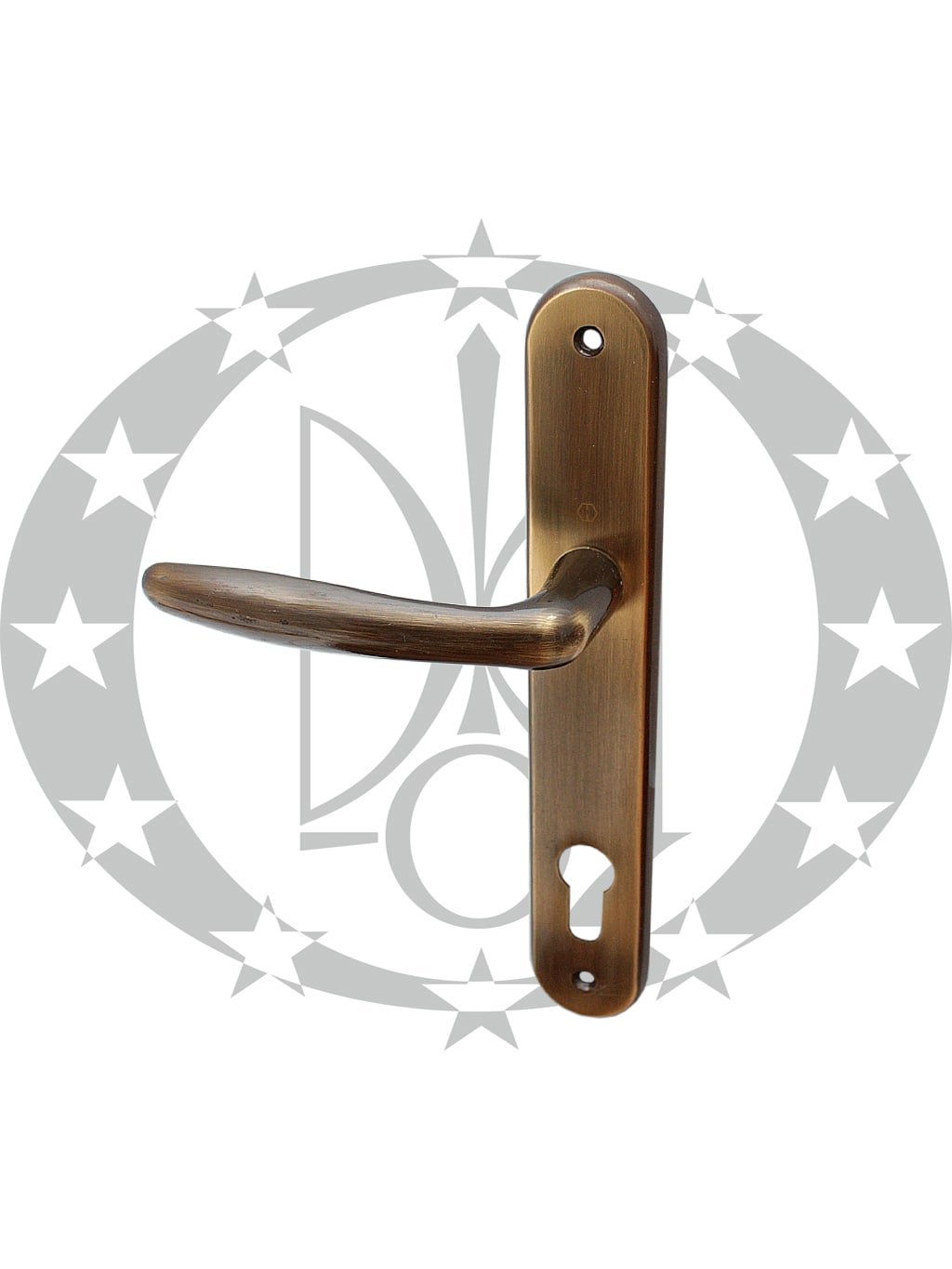 Ручка ROISSY 90 PZ бронза (УЦІНЕНИЙ ТОВАР) – латунна, натискна, дверна ручка відомого німецького бренду Hoppe на довгій планці з отвором під серцевину.