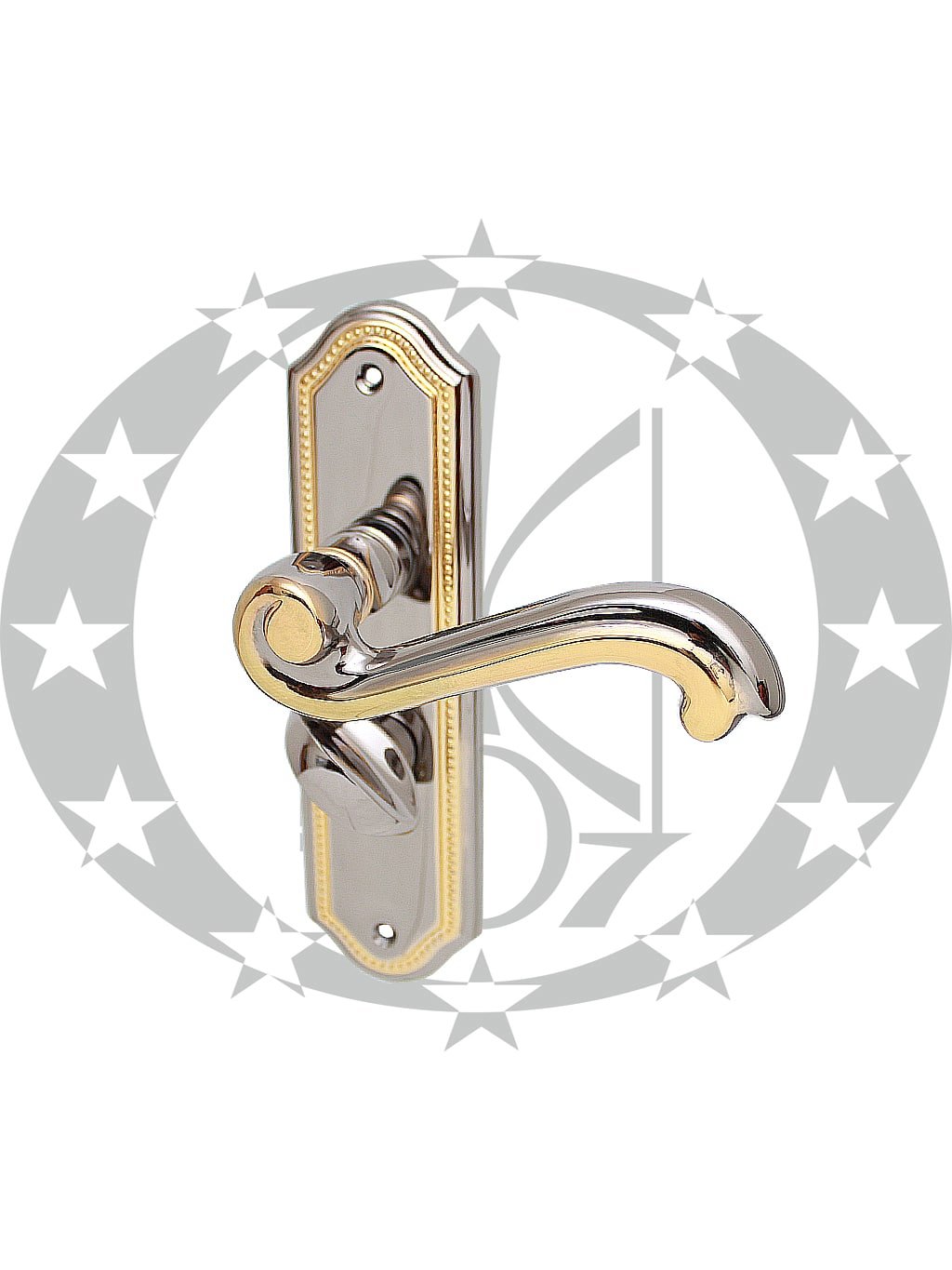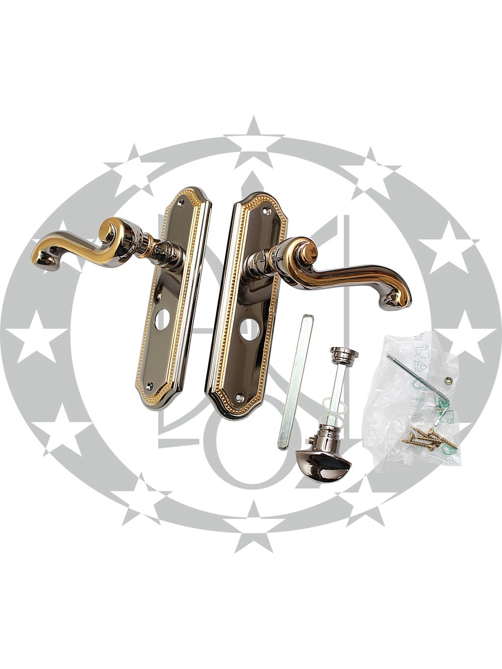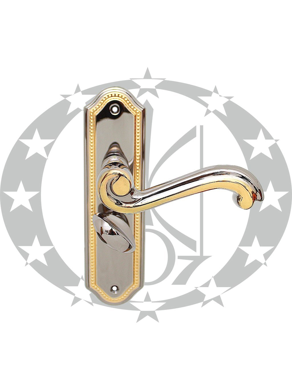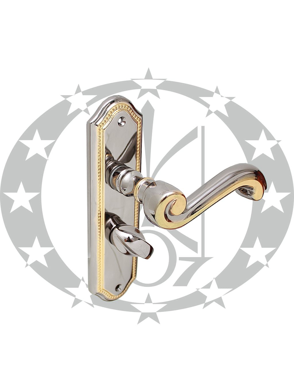 Ручка SIVIGLIA 47,5 WC золото/платина OPDV – масивна дверна ручка преміум класу італійського бренду ENTRA на вкороченій планці з отвором під серцевину. Ручка призначена для встановлення у внутрішні двері із міжкімнатною защіпкою. SIVIGLIA виготовлена із високоякісної латуні та вкрита високоякісним багаторазовим гальванічним покриттям.