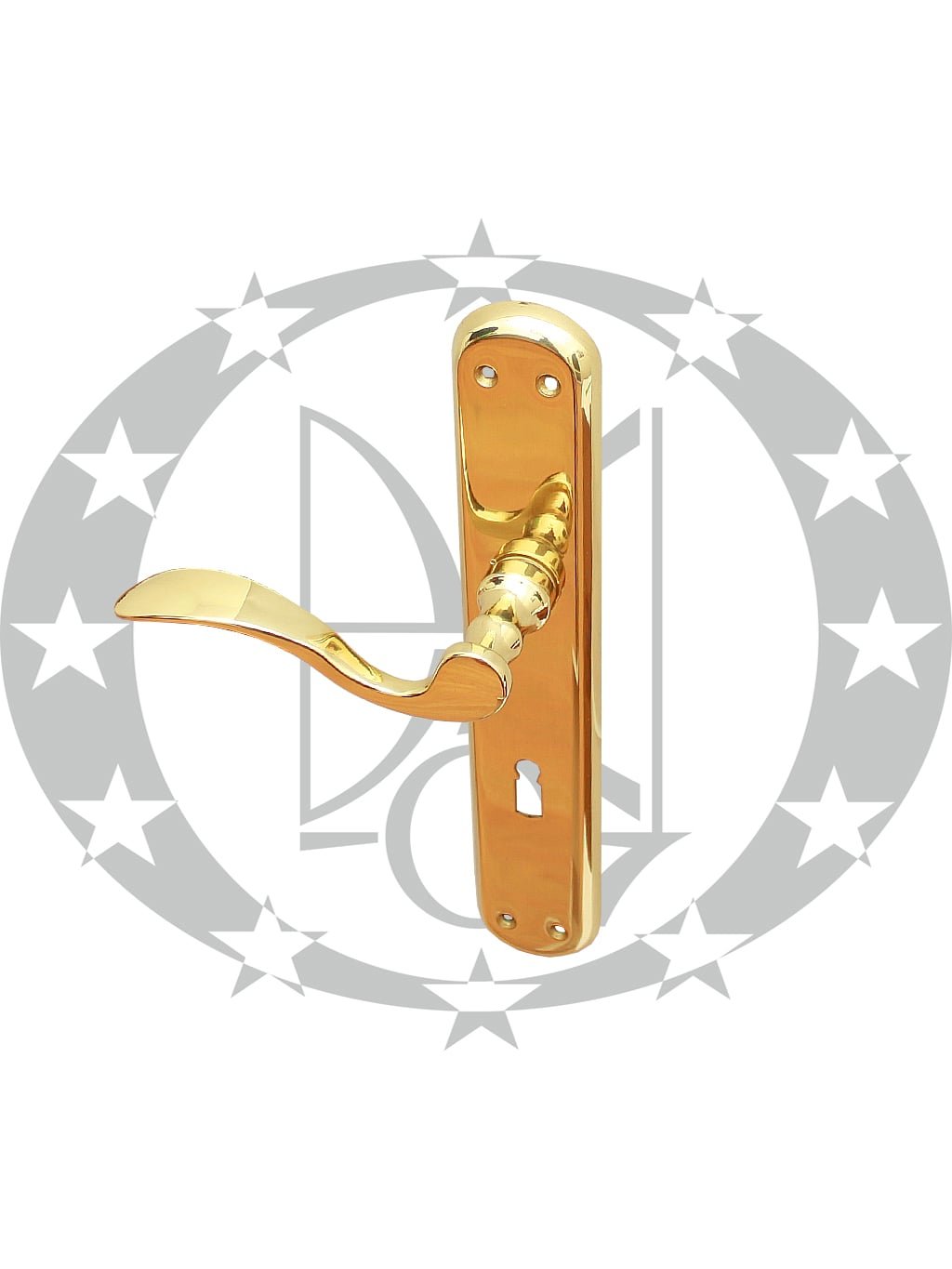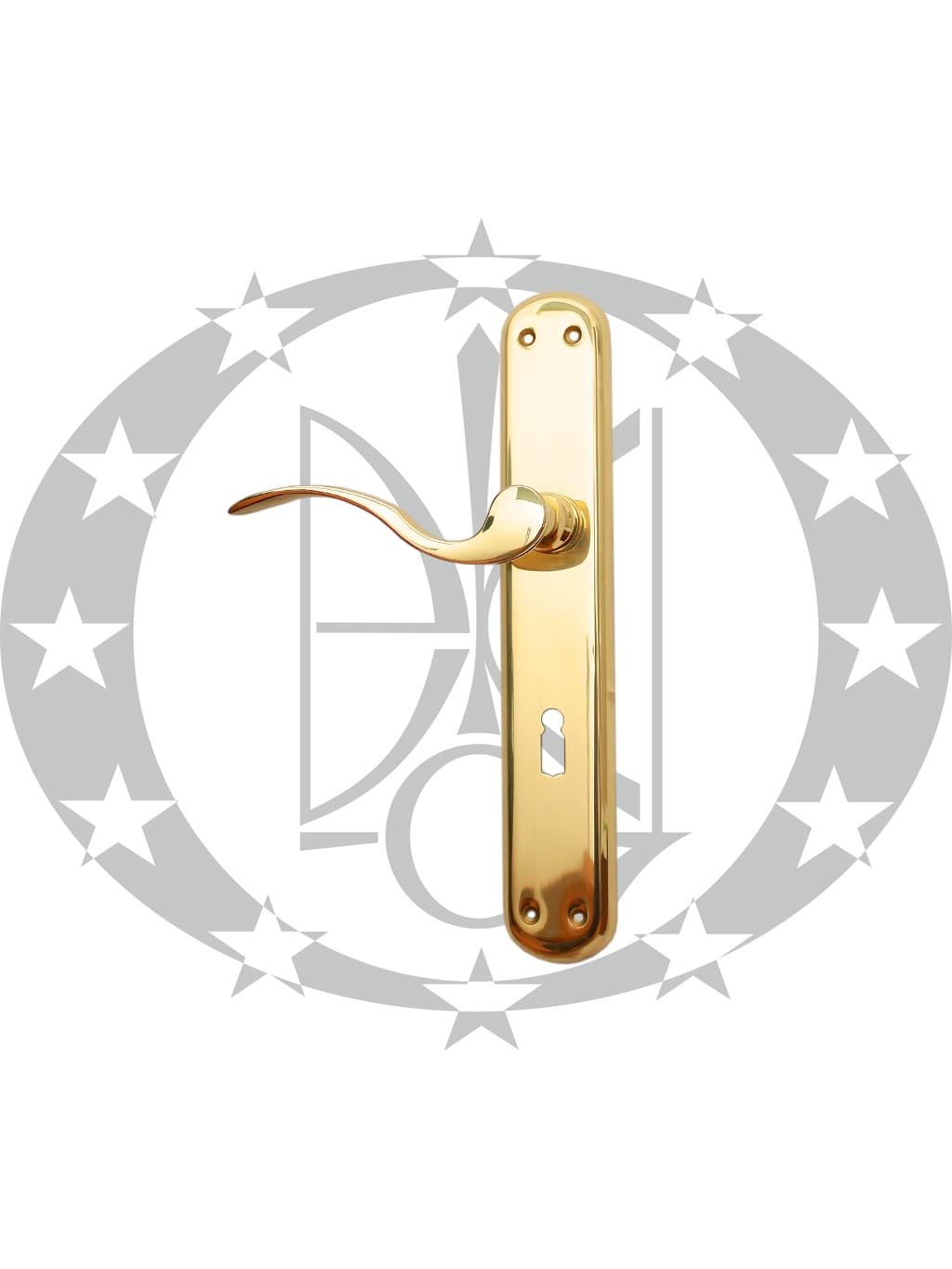 Ручка SPANIA 72 ключ латунь – дверна ручка італійсько – румунського виробника Verofer на довгій планці з отвором під ключ. Дана ручка призначена для встановлення у внутрішні двері із сувальдним механізмом.