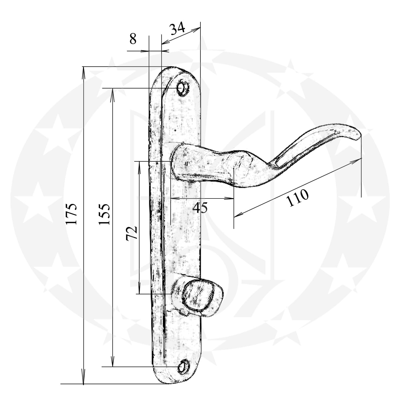 Ручка VERONA scurta 72 WC бронза – румунського виробника Verofer на вкороченій планці з воротком. Дана ручка призначена для встановлення у внутрішні двері із сантехнічним механізмом.