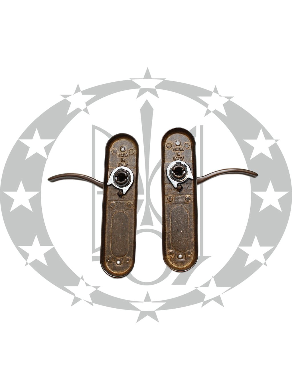 Ручка VESTA глуха бронза – дверна ручка італійського виробника M.B.C. на вкороченій планці без отвору. Ручка виготовлена із латуні та вкрита патиною та захисним лаковим покриттям. Кріплення ручок до дверного полотна здійснюється за допомогою шурупів. Ручка VESTA глуха бронза призначена для встановлення в внутрішні дерев’яні двері із міжкімнатною защіпкою. Завдяки високоякісним матеріалам та використанню інноваційних технологій вся продукція бренду M.B.C. характеризується високим рівнем якості продукції, точністю з’єднань та якістю покриттів.