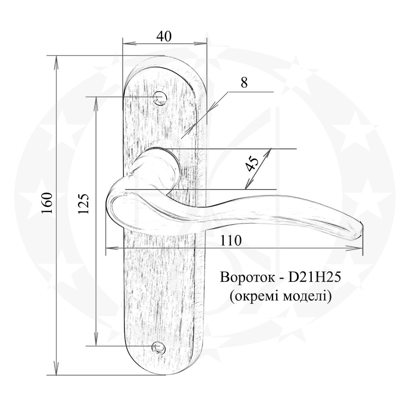 - довжина поворотно – тягового елемента (клямки) – 110 мм;