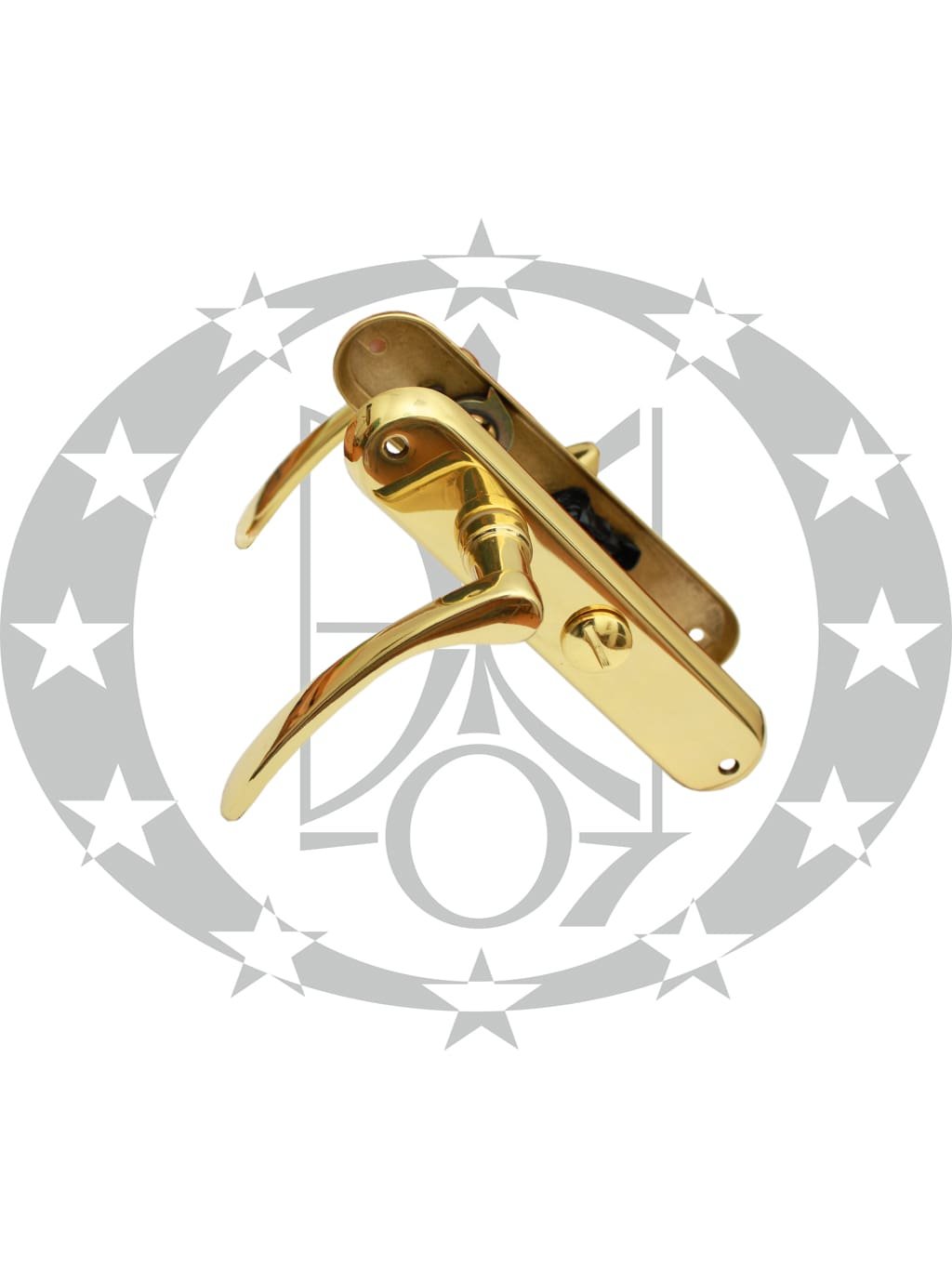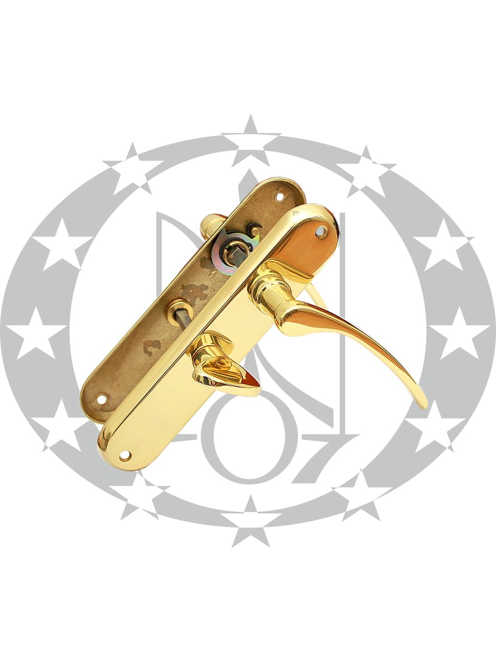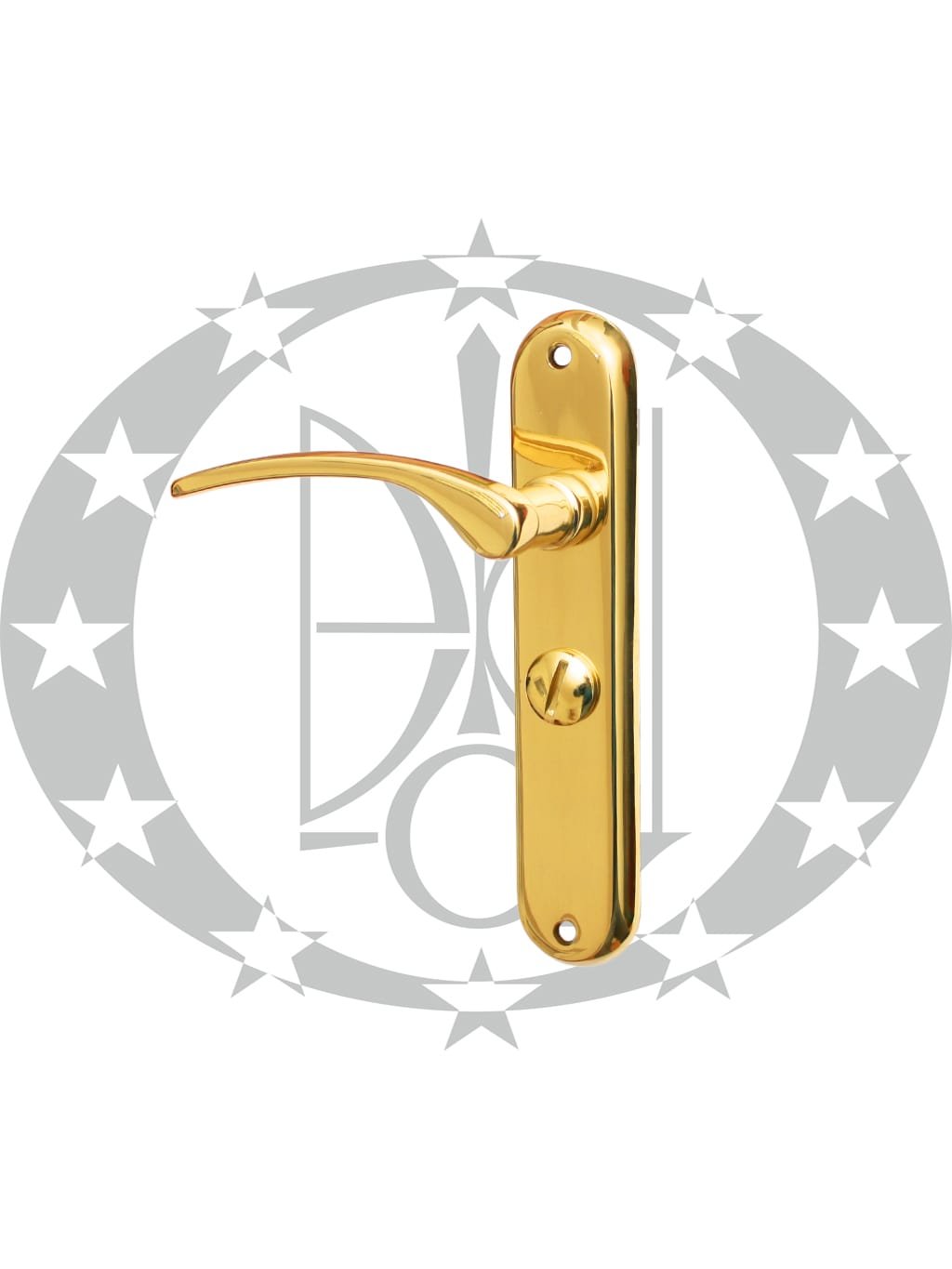Ручка Vienetta scurta 47,5 WC латунь – дверна ручка італійсько – румунського виробника Verofer на вкороченій планці з воротком. Дана ручка призначена для встановлення у внутрішні двері без замикання.