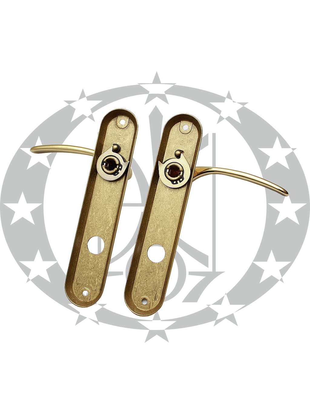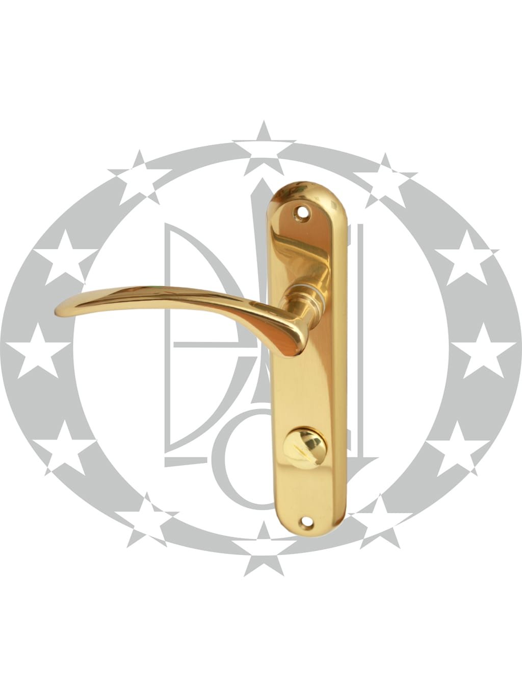 Ручка VIENETTA scurta 72 WC латунь – дверна ручка італійсько – румунського виробника Verofer на вкороченій планці з воротком. Дана ручка призначена для встановлення у внутрішні двері без замикання.