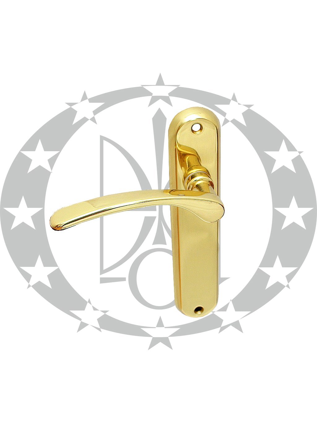 Ручка Vienetta scurta глуха латунь полірована – румунського виробника Verofer на вкороченій планці без отвору. Дана ручка призначена для встановлення у внутрішні двері із міжкімнатною защіпкою.