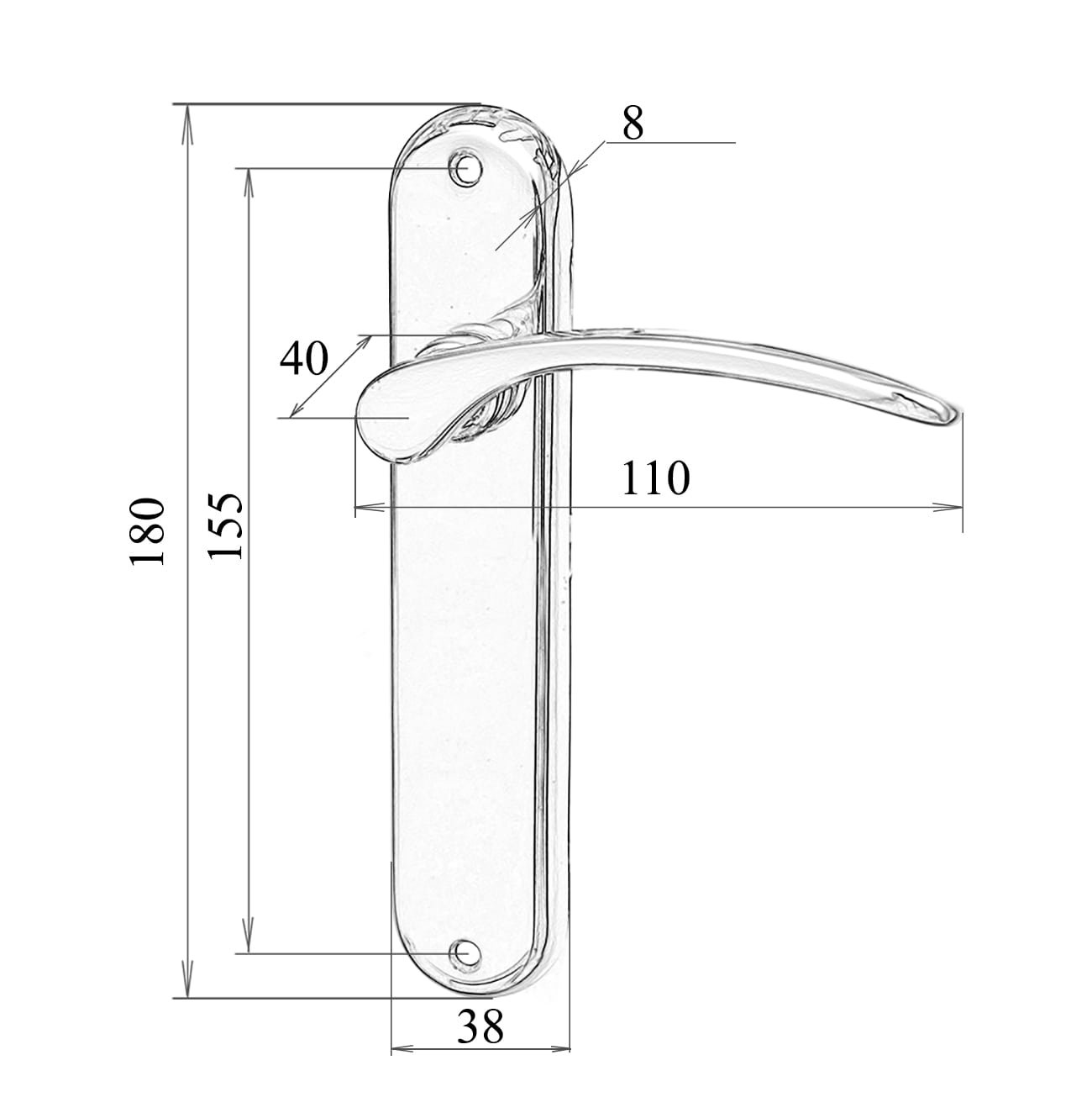- довжина поворотно – тягового елемента (клямки) – 110 мм;