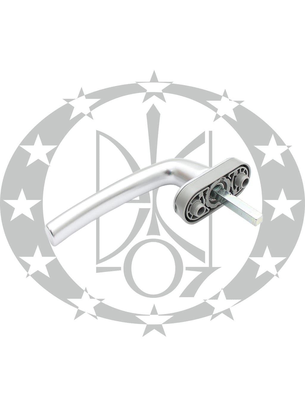 Ручка віконна DR VBH GreenteQ FG10 AL F1 срібло (3488232) – віконна поворотно – тягова ручка виробника VBH GreenteQ для профільних ПВХ, алюмінієвих чи дерев’яних вікон. Ручка виготовлена із міцного алюмінієвого сплаву гальванічним покриттям. Отвори для кріплення ручки до дверного полотна приховані під лицевою частиною розети. Гвинти для кріплення входять в комплектацію ручки.