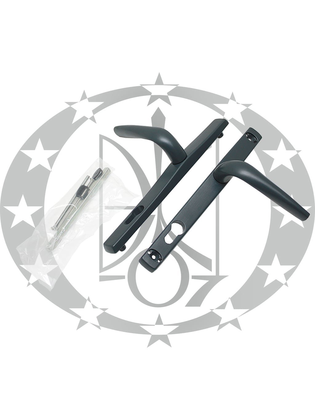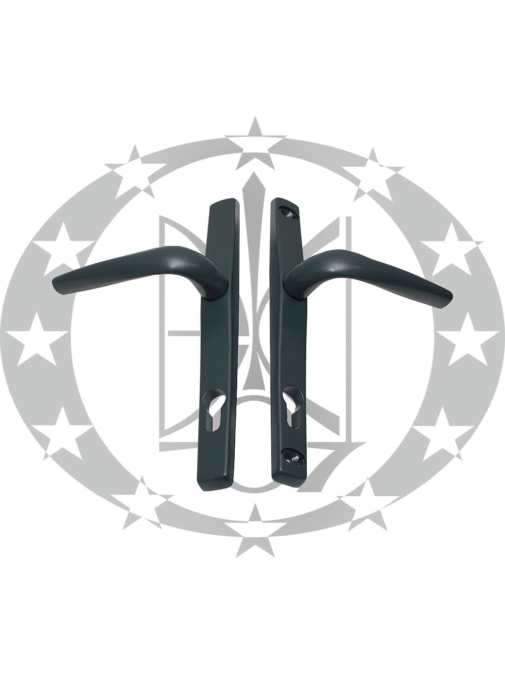 Ручки STUBLINA 92 PZ антрацит вузька 25 мм з пружиною (1121.00.383) – дверна натискна ручка сербського виробника Stublina на планці з отвором під серцевину. Дана ручка призначена для встановлення в усі типи профільних дверей виготовлених із ПВХ та алюмінію.