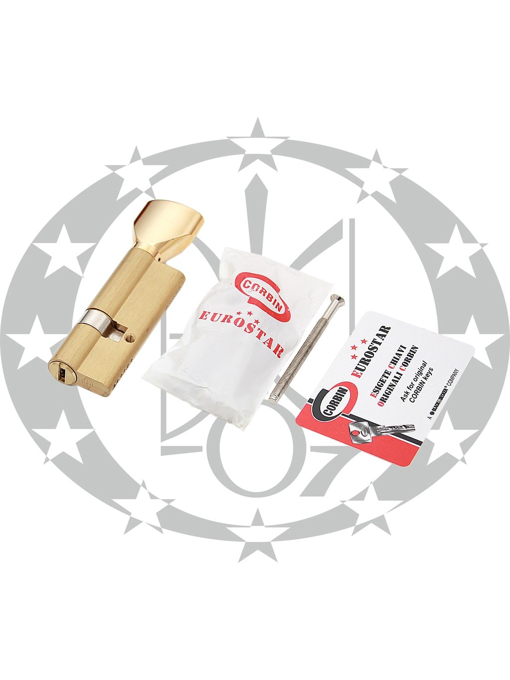 Серцевина CORBIN 30/50 вороток латунь – стандартна латунна серцевина італійського бренду CORBIN із воротком. Серцевина оснащена 6-ти піновим механізмом секретності під горизонтальний лазерний ключ. Серцевина оснащено захистом від спроб висвердлювання та виривання. Корпус виготовлено із латуні. Зміщення кулачка – 30 градусів.