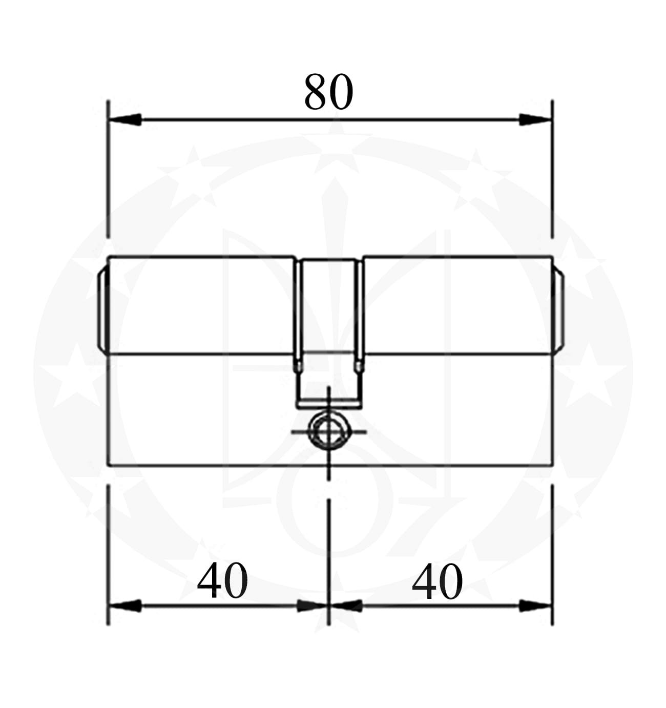 Серцевина IMPERIAL C 40/40 латунь горизонтальний ключ 5ключів – стандартна симетрична серцевина китайського виробництва під горизонтальний ключ. Серцевина виготовлена із сплаву ЦАМ (цинк, алюміній, мідь).