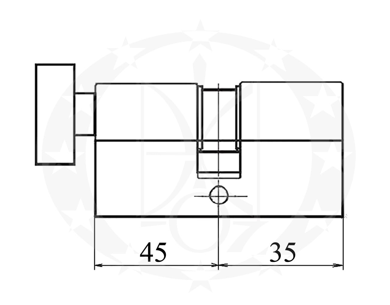 Серцевина KALE 164 SMC 45T/35 вороток латунь – стандартна асиметрична серцевина турецького виробника KALE під горизонтальний перфорований ключ. Серцевина виготовлена із латуні MS 58. Загартовані піни виготовлені із гартованої сталі забезпечують стійкість серцевини до висвердлювання. Додаткові 4 сталевих піни в нижній частині значно підвищують ступінь захисту. Пружини виготовлені із нержавіючої сталі забезпечують довговічність та надійність серцевини.