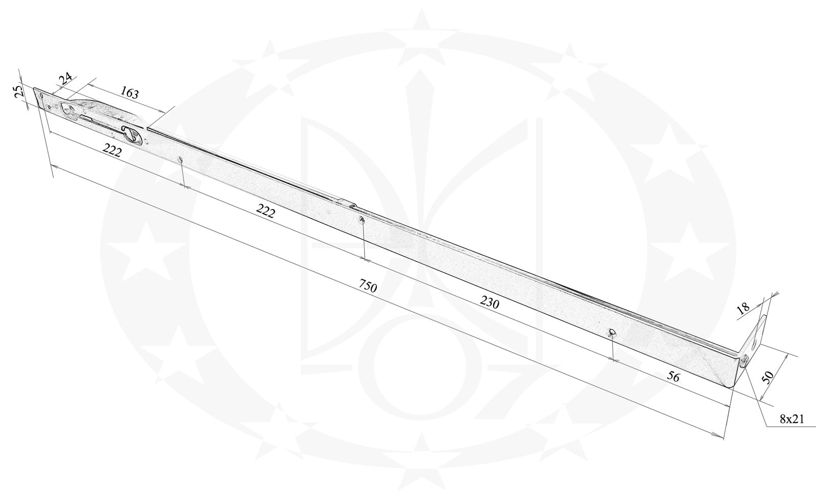 Шпінгалет Kowal K1/750 великий цинкований – дверний врізний шпінгалет, призначений для фіксації однієї із стулок двохстулкових дверей чи половинки півторачних дверей.