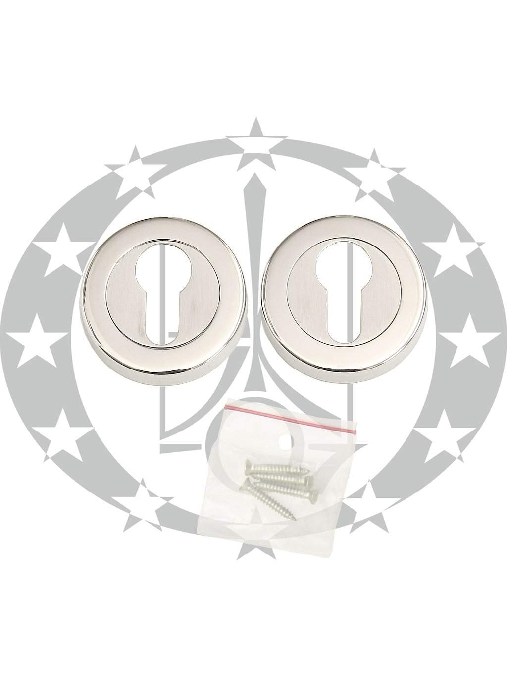 Дверна накладка ART.84 PZ нержавійка – кругла дверна накладка польського виробництва з отвором під серцевину. Матеріал – нержавіюча сталь. Накладка виконує декоративну функцію, облагороджує отвір під ключ чи серцевину, а також доповнює дизайн дверей. Накладка кріпиться до дверного полотна за допомогою шурупів.
