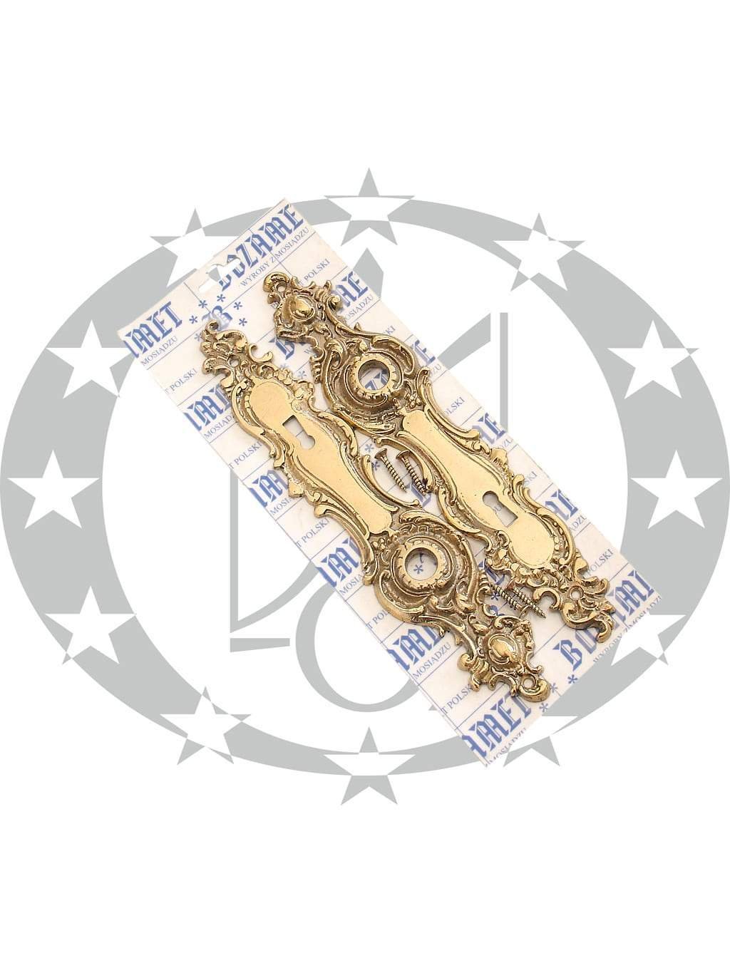 Планка для ручки 90 під ключ латунь церковна – латунна планка польського виробництва з отвором під ключ. Планка виготовлена із якісної латуні та заполірована. Накладка церковна прикрашена декоративними елементами і завдяки своєму дизайну прикрасить більшість класичних інтер’єрів та додасть їм вишуканості.